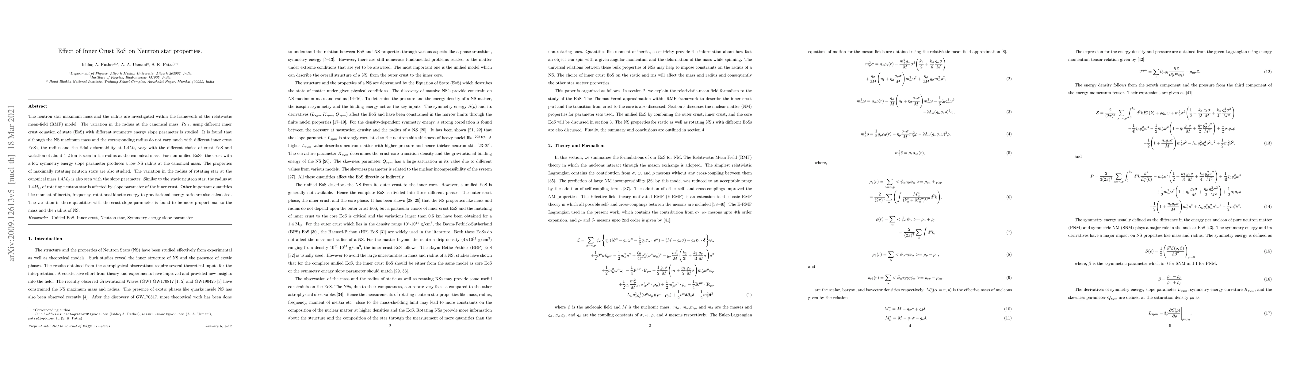 This paper investigates the impact of different inner crust equations of state (EoS) on neutron star properties using the relativistic mean-field model. It finds that while the maximum mass remains relatively constant, the radius and tidal deformability at 1.4 solar masses vary significantly with the symmetry energy slope parameter, showing a radius change of about 1-2 km.