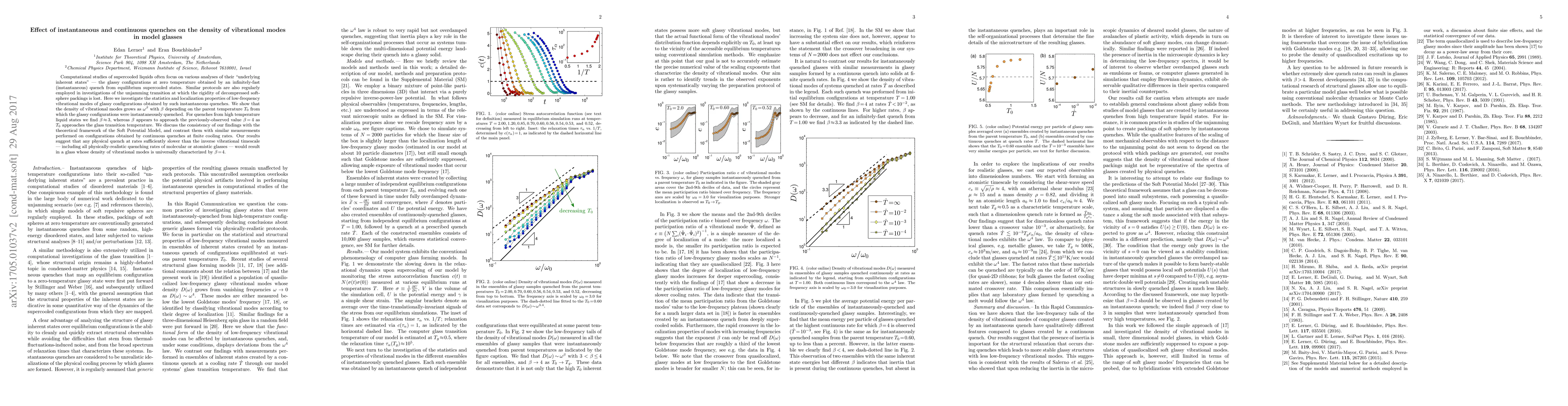 Computational studies of supercooled liquids often focus on various analyses of their "underlying inherent states" --- the glassy configurations at zero temperature obtained by an infinitely-fast (instantaneous) quench from equilibrium supercooled states. Similar protocols are also regularly employed in investigations of the unjamming transition at which the rigidity of decompressed soft-sphere packings is lost. Here we investigate the statistics and localization properties of low-frequency vibrational modes of glassy configurations obtained by such instantaneous quenches. We show that the density of vibrational modes grows as $\omega^\beta$ with $\beta$ depending on the parent temperature $T_{0}$ from which the glassy configurations were instantaneously quenched. For quenches from high temperature liquid states we find $\beta\!\approx\!3$, whereas $\beta$ appears to approach the previously-observed value $\beta\!=\!4$ as $T_0$ approaches the glass transition temperature. We discuss the consistency of our findings with the theoretical framework of the Soft Potential Model, and contrast them with similar measurements performed on configurations obtained by continuous quenches at finite cooling rates. Our results suggest that any physical quench at rates sufficiently slower than the inverse vibrational timescale --- including all physically-realistic quenching rates of molecular or atomistic glasses --- would result in a glass whose density of vibrational modes is universally characterized by $\beta\!=\!4$.