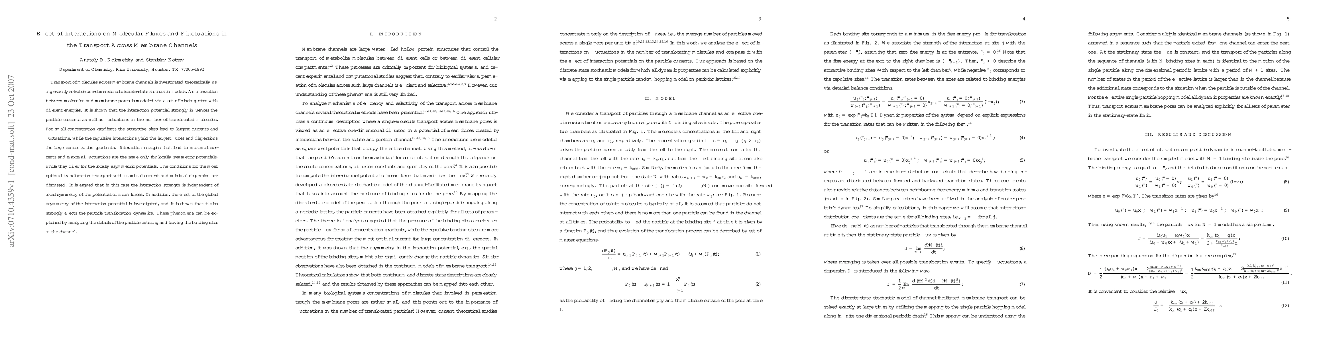 Research shows that interactions between molecules and membrane pores significantly affect molecular transport across channels, with attractive sites leading to large currents and fluctuations for small gradients, and repulsive interactions yielding the largest fluxes and dispersions for large gradients.