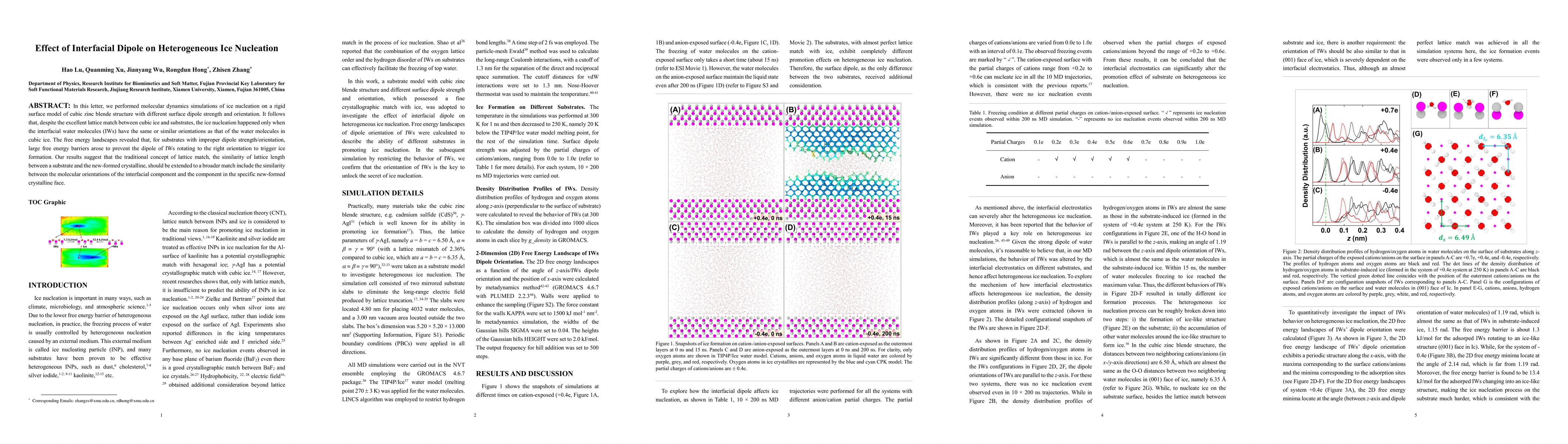 The study provides insights into how interfacial electrostatics and molecular orientations of interfacial water molecules affect heterogeneous ice nucleation, contributing to a more comprehensive understanding of ice nucleation mechanisms.
