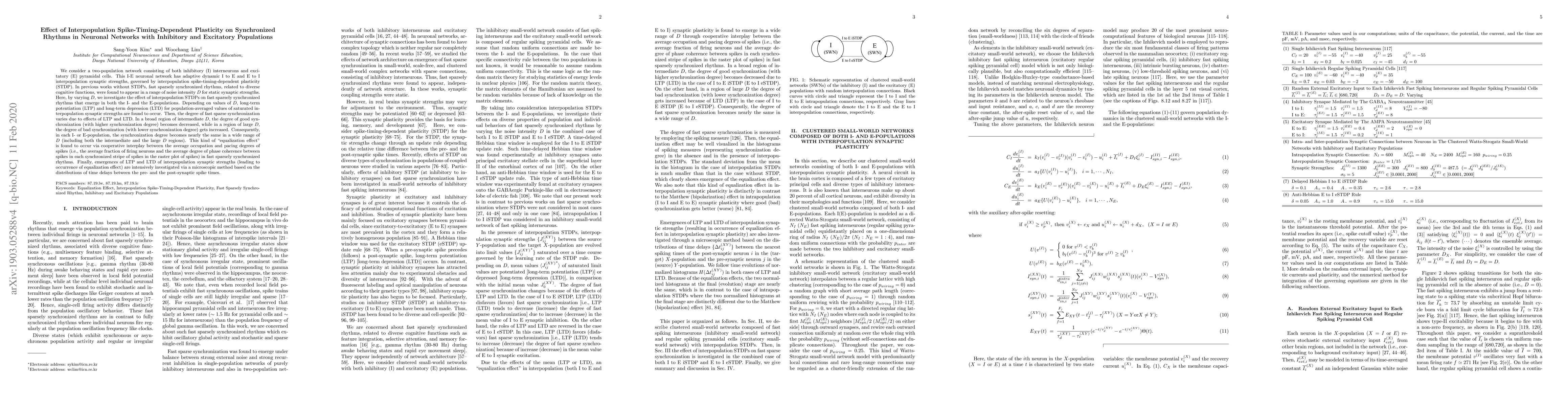 We consider clustered small-world networks with both inhibitory (I) and excitatory (E) populations. This I-E neuronal network has adaptive dynamic I to E and E to I interpopulation synaptic strengths, governed by interpopulation spike-timing-dependent plasticity (STDP). In previous works without STDPs, fast sparsely synchronized rhythms, related to diverse cognitive functions, were found to appear in a range of noise intensity $D$ for static synaptic strengths. By varying $D$, we investigate the effect of interpopulation STDPs on diverse population and individual properties of fast sparsely synchronized rhythms that emerge in both the I- and the E-populations. Depending on values of $D$, long-term potentiation (LTP) and long-term depression (LTD) for population-averaged values of saturated interpopulation synaptic strengths are found to occur, and they make effects on the degree of fast sparse synchronization. In a broad region of intermediate $D$, the degree of good synchronization (with higher spiking measure) becomes decreased, while in a region of large $D$, the degree of bad synchronization (with lower spiking measure) gets increased. Consequently, in each I- or E-population, the synchronization degree becomes nearly the same in a wide range of $D$. This kind of "equalization effect" is found to occur via cooperative interplay between the average occupation and pacing degrees of fast sparsely synchronized rhythms. We note that the equalization effect in interpopulation synaptic plasticity is distinctly in contrast to the Matthew (bipolarization) effect in intrapopulation (I to I and E to E) synaptic plasticity where good (bad) synchronization gets better (worse). Finally, emergences of LTP and LTD of interpopulation synaptic strengths are intensively investigated via a microscopic method based on the distributions of time delays between the pre- and the post-synaptic spike times.