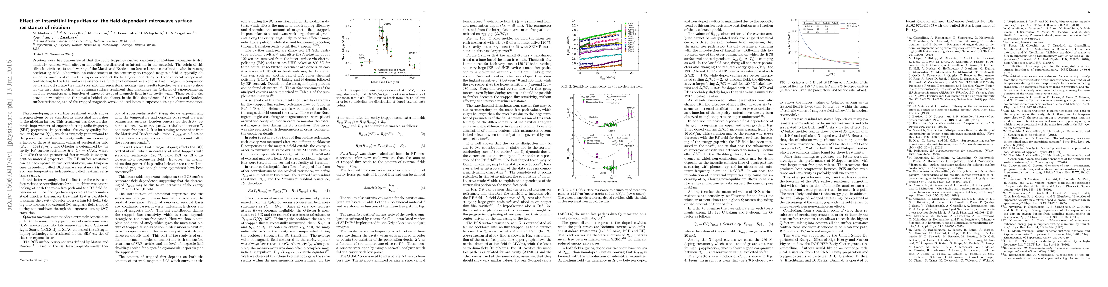 This paper investigates the impact of nitrogen interstitial impurities on the microwave surface resistance of niobium resonators, revealing the optimal surface treatment to maximize the Q-factor by balancing the contributions of Mattis and Bardeen surface resistance and trapped magnetic field effects. The study provides new insights into the underlying physics of these phenomena in superconducting niobium.