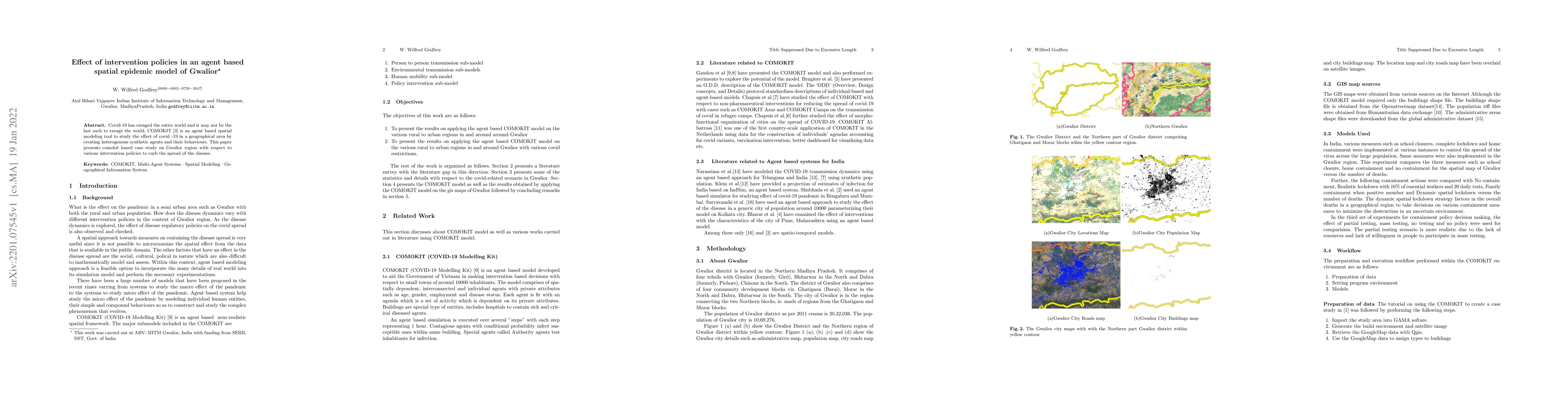 This paper uses the COMOKIT agent-based spatial model to study the impact of various intervention policies on curbing Covid-19 in Gwalior, simulating heterogeneous synthetic agents and their behaviors to assess potential containment strategies.