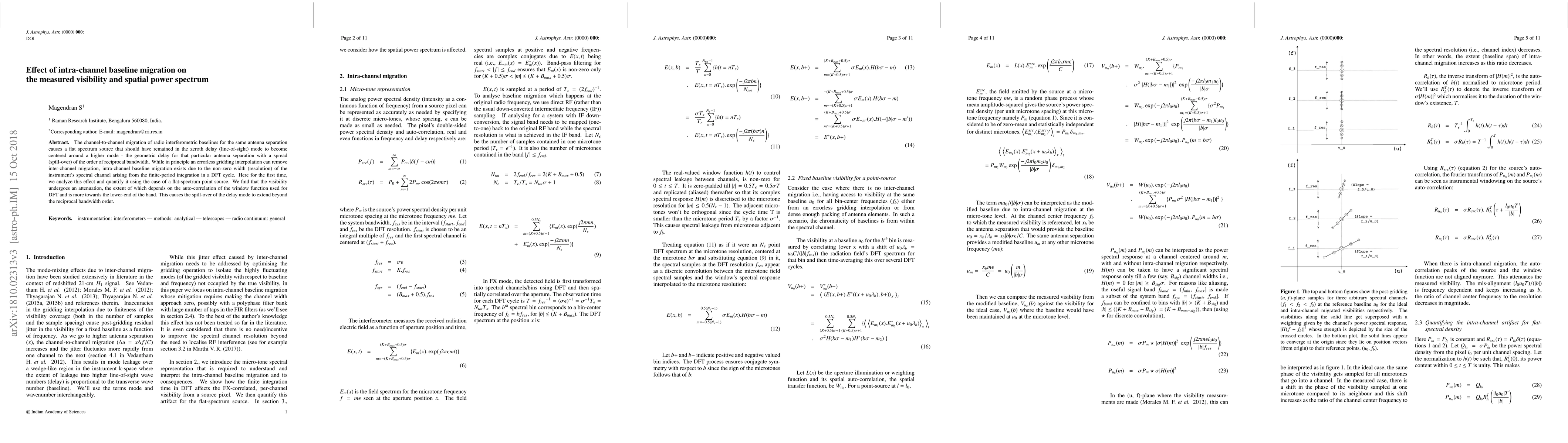 This paper investigates the impact of intra-channel baseline migration on radio interferometric measurements, finding that it leads to attenuation in visibility and alters the spatial power spectrum, particularly affecting lower-end frequencies due to the auto-correlation of the DFT window function.