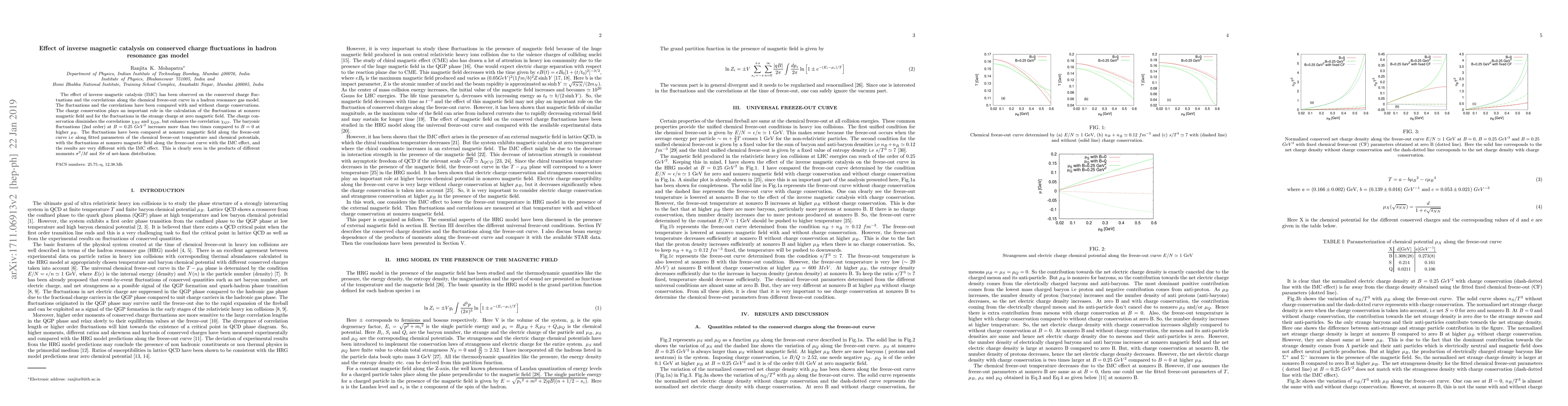 The effect of inverse magnetic catalysis (IMC) has been observed on the conserved charge fluctuations and the correlations along the chemical freeze-out curve in a hadron resonance gas model. The fluctuations and the correlations have been compared with and without charge conservations. The charge conservation plays an important role in the calculation of the fluctuations at nonzero magnetic field and for the fluctuations in the strange charge at zero magnetic field. The charge conservation diminishes the correlations $\chi_{BS}$ and $\chi_{QB}$, but enhances the correlation $\chi_{QS}$. The baryonic fluctuations (2nd order) at $B = 0.25$ ${GeV}^2$ increases more than two times compared to $B = 0$ at higher $\mu_{B}$. The fluctuations have been compared at nonzero magnetic field along the freeze-out curve i.e along fitted parameters of the chemical freeze-out temperature and chemical potentials, with the fluctuations at nonzero magnetic field along the freeze-out curve with the IMC effect, and the results are very different with the IMC effect. This is clearly seen in the products of different moments ${{\sigma}^2}/{M}$ and $S\sigma$ of net-kaon distribution.