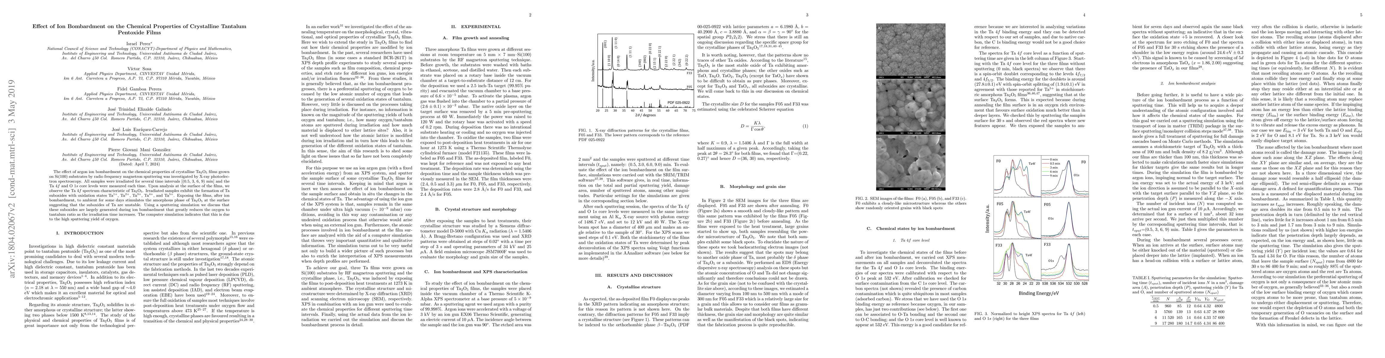 The effect of argon ion bombardment on the chemical properties of crystalline Ta$_2$O$_5$ films grown on Si(100) substrates by radio frequency magnetron sputtering was investigated by X-ray photoelectron spectroscopy. All samples were irradiated for several time intervals [(0.5, 3, 6, 9) min] and the Ta $4f$ and O $1s$ core levels were measured each time. Upon analysis at the surface of the films, we observe the Ta $4f$ spectrum characteristic of Ta$_2$O$_5$. Irradiated samples exhibit the formation of Ta suboxides with oxidation states Ta$^{1+}$, Ta$^{2+}$, Ta$^{3+}$, Ta$^{4+}$, and Ta$^{5+}$. Exposing the films, after ion bombardment, to ambient for some days stimulates the amorphous phase of Ta$_2$O$_5$ at the surface suggesting that the suboxides of Ta are unstable. Using a sputtering simulation we discuss that these suboxides are largely generated during ion bombardment that greatly reduces the oxygen to tantalum ratio as the irradiation time increases. The computer simulation indicates that this is due to the high sputtering yield of oxygen.