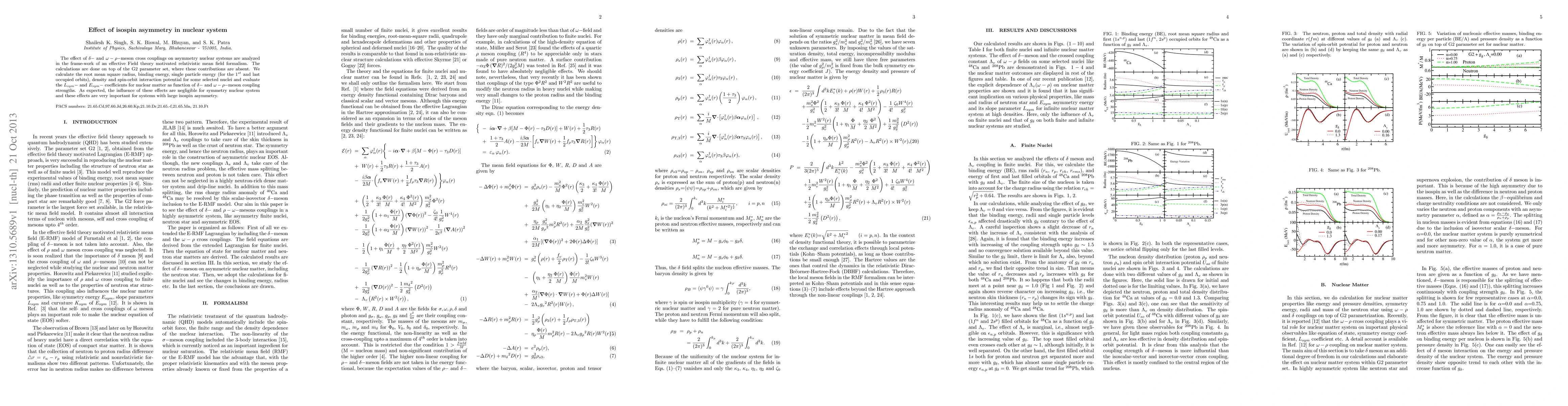 The effect of $\delta-$ and $\omega-\rho-$meson cross couplings on asymmetry nuclear systems are analyzed in the frame-work of an effective Field theory motivated relativistic mean field formalism. The calculations are done on top of the G2 parameter set, where these contributions are absent. We calculate the root mean square radius, binding energy, single particle energy (for the $1^{st}$ and last occupied orbits), density and spin-orbit interaction potential for some selected nuclei and evaluate the $L_{sym}-$ and $E_{sym}-$ coefficients for nuclear matter as function of $\delta-$ and $\omega-\rho-$meson coupling strengths. As expected, the influence of these effects are negligible for symmetry nuclear system and these effects are very important for systems with large isospin asymmetry.