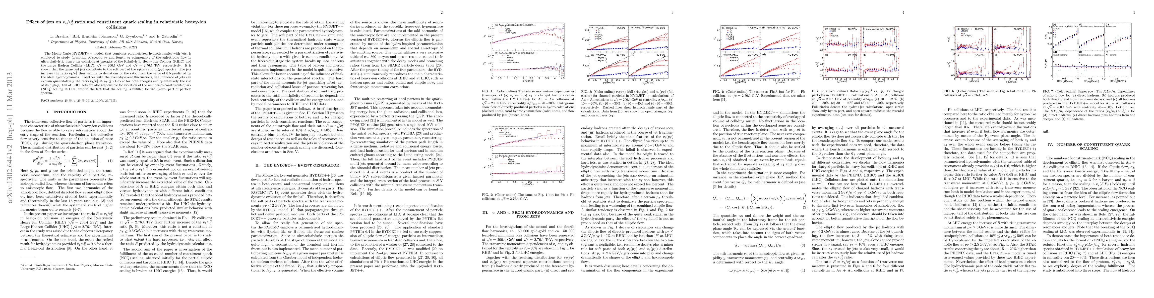 The Monte Carlo HYDJET++ model reveals that jets affect the v_4/v_2^2 ratio and disrupt constituent quark scaling in relativistic heavy-ion collisions, deviating from ideal hydrodynamics predictions and explaining observed phenomena at RHIC and LHC energies.