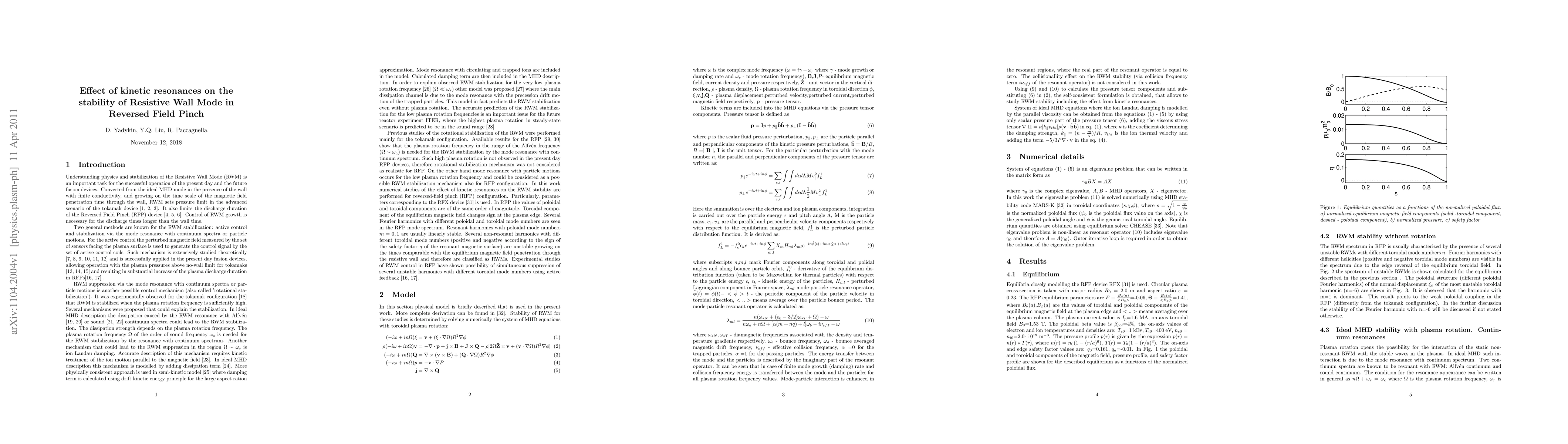 The study investigates kinetic effects on the resistive wall mode stability in reversed field pinch plasmas using a non-perturbative MHD-kinetic hybrid model, finding that these effects are too weak to significantly alter the mode growth rate or stability margin, supporting the adequacy of ideal MHD for describing RWM physics.