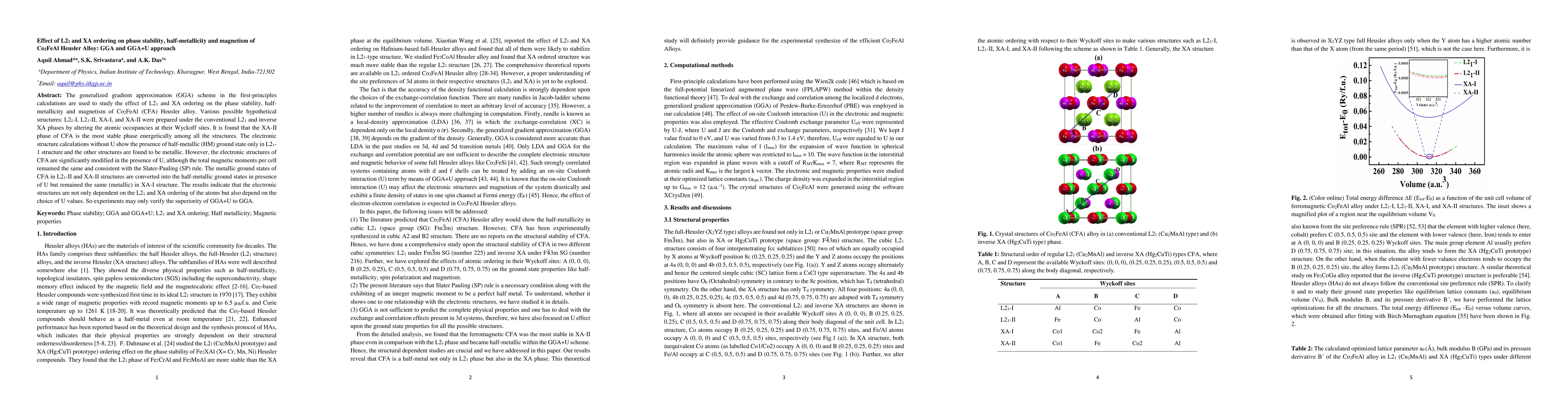 This study investigates the impact of L21 and XA ordering on the phase stability, half-metallicity, and magnetism of Co2FeAl Heusler alloy using GGA and GGA+U calculations. The XA-II phase is found to be the most stable, while L21-I exhibits half-metallicity without U, but GGA+U converts metallic states in L21-II and XA-II to half-metallic, highlighting the dependence of electronic structure on both atomic ordering and U value selection.