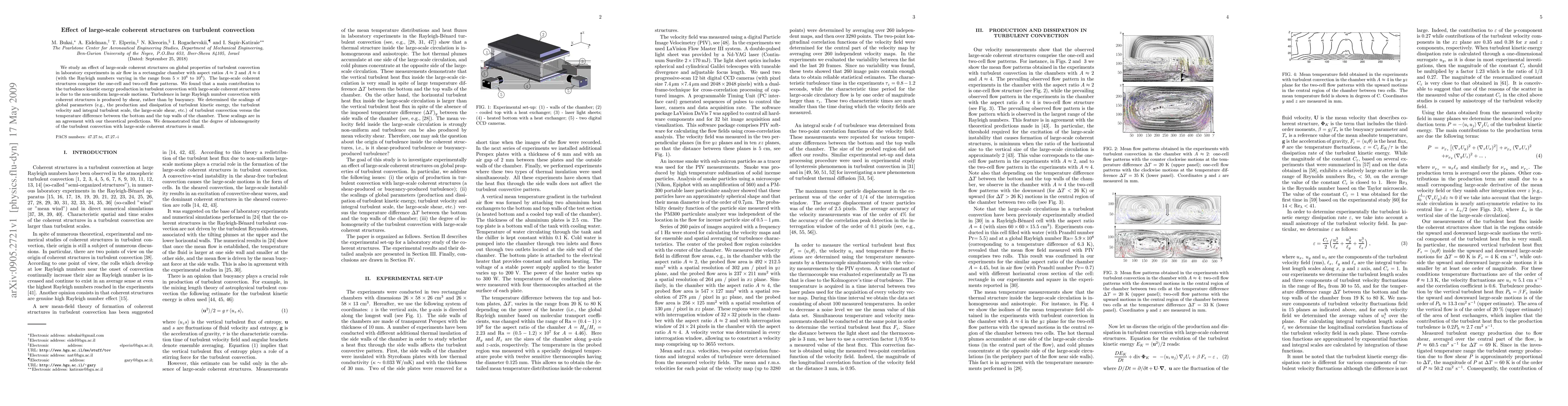 This study investigates how large-scale coherent structures influence turbulent convection in laboratory experiments, finding that non-uniform large-scale motions significantly contribute to turbulence kinetic energy production, driven by shear rather than buoyancy. The research also determined scalings for global parameters that align with theoretical predictions.