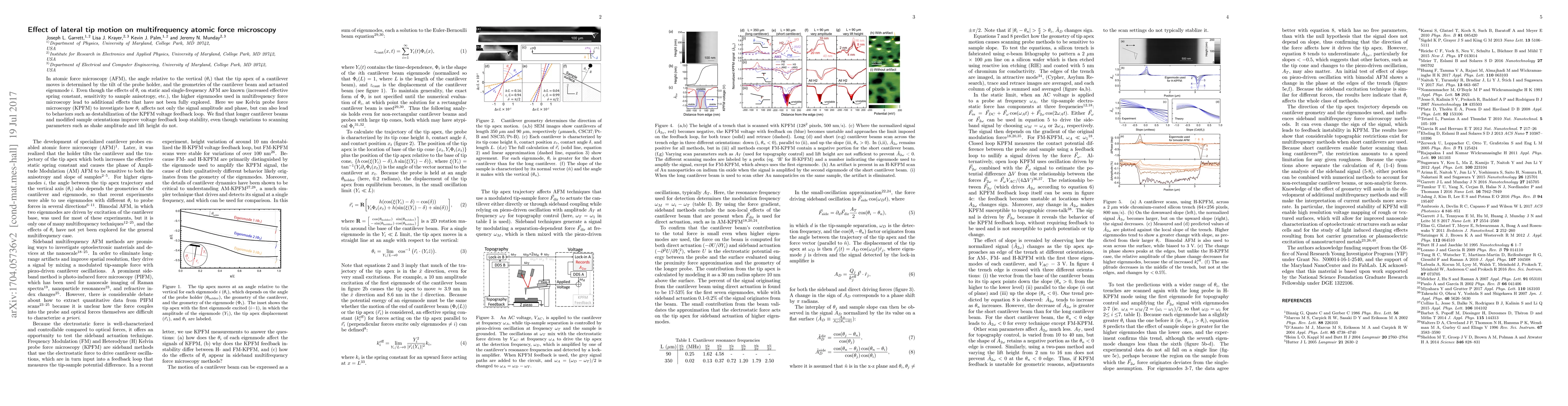 In atomic force microscopy (AFM), the angle relative to the vertical ($\theta_{i}$) that the tip apex of a cantilever moves is determined by the tilt of the probe holder and the geometries of the cantilever and actuated eigenmode $i$. Even though the effects of $\theta_{i}$ on static and single-frequency AFM are known (increased effective spring constant, sensitivity to sample anisotropy, etc), the higher eigenmodes used in multifrequency force microscopy lead to additional effects that have not been fully explored. Here we use Kelvin probe force microscopy (KPFM) to investigate how $\theta_{i}$ affects not only the signal amplitude and phase, but can also lead to behaviors such as destabilization of the KPFM voltage feedback loop. We find that longer cantilevers and modified sample orientations improve voltage feedback loop stability, even though variations to scanning parameters such as cantilever shake amplitude and lift height do not.