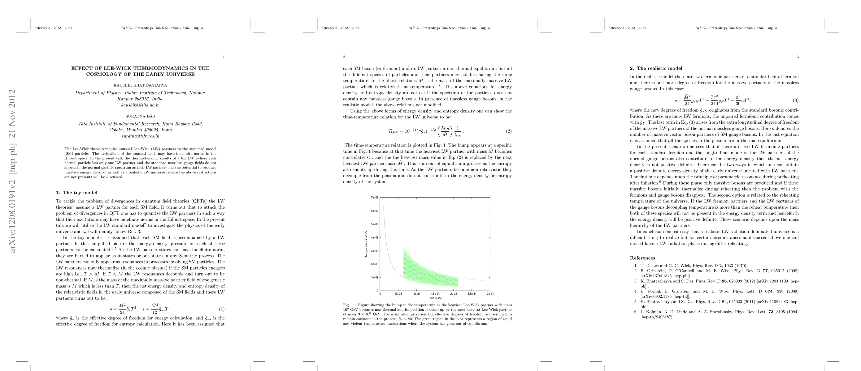 This paper explores the thermodynamic implications of Lee-Wick theories in the context of early universe cosmology, comparing simplified models with limited LW partners to more realistic scenarios without such restrictions. The study highlights the potential for negative energy densities in these unconventional theories.