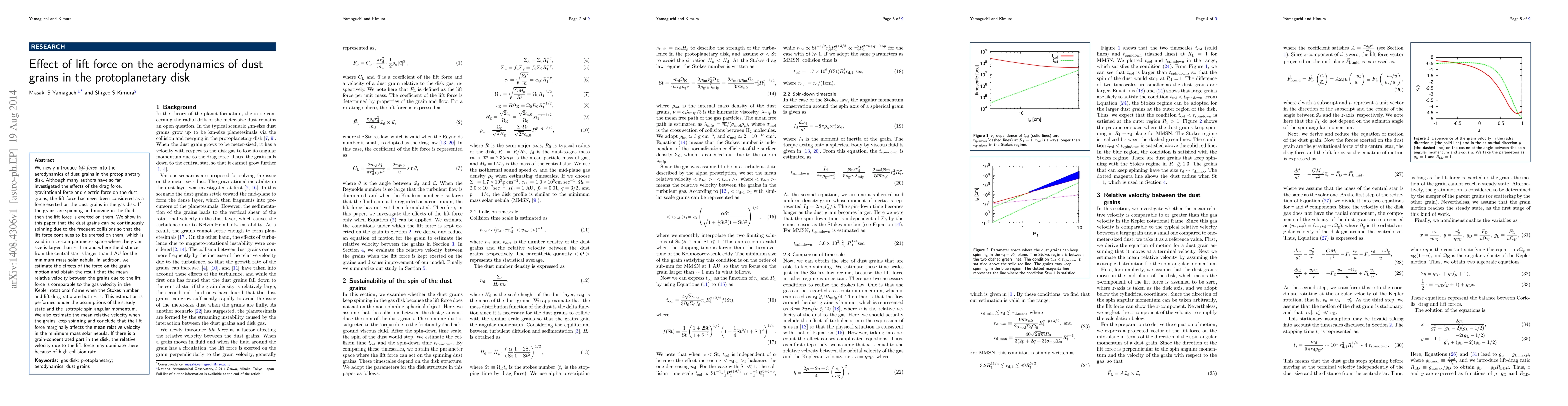 This paper introduces the lift force into the aerodynamics of dust grains in protoplanetary disks, showing that spinning grains experience this force due to frequent collisions. The study finds that the lift force can significantly affect grain motion, especially in regions with high collision rates, though its overall impact on mean relative velocity in typical conditions is marginal.