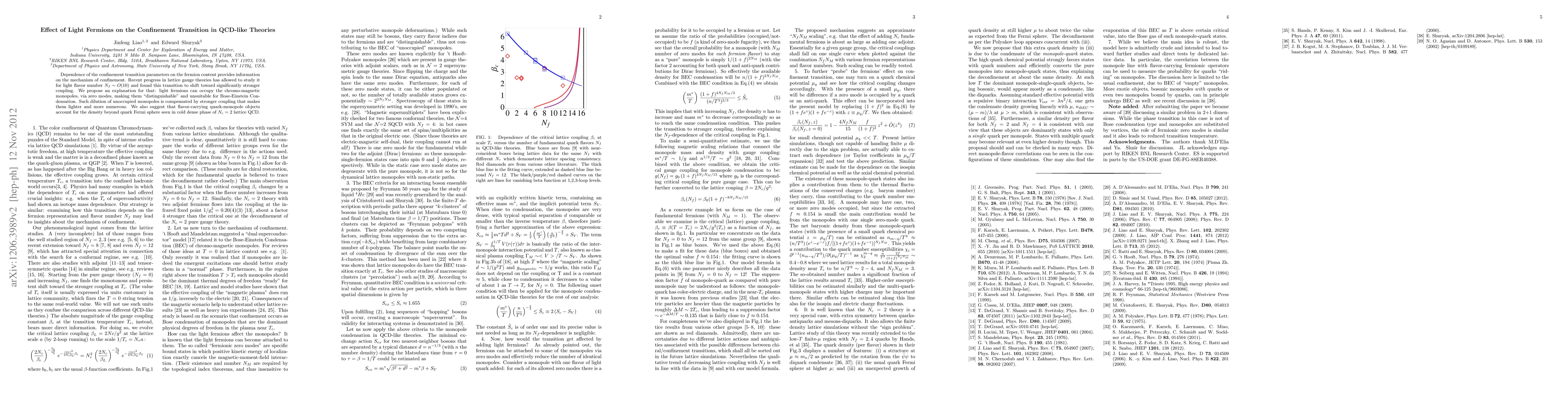 Dependence of the confinement transition parameters on the fermion content provides information on the mechanism of confinement. Recent progress in lattice gauge theories has allowed to study it for light flavor number $N_f\sim O(10)$ and found this transition to shift toward significantly stronger coupling. We propose an explanation for that: light fermions can occupy the chromo-magnetic monopoles, via zero modes, making them "distinguishable" and unsuitable for Bose-Einstein Condensation. Such dilution of unoccuplied monopoles is compensated by stronger coupling that makes them lighter and more numerous. We also suggest that flavor-carrying quark-monopole objects account for the density beyond quark Fermi sphere seen in cold dense phase of $N_c=2$ lattice QCD.