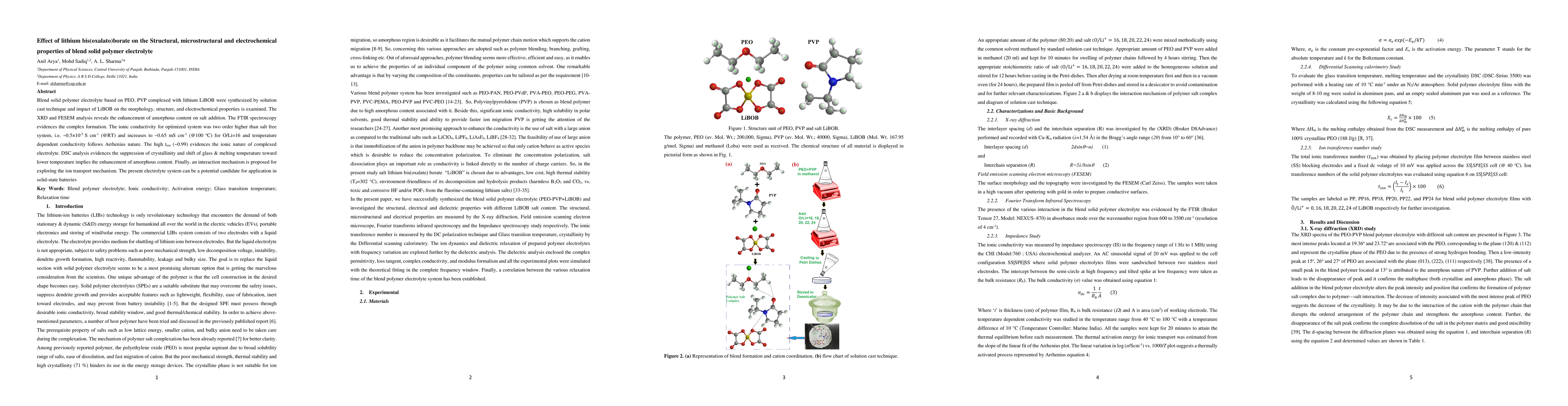 A blend solid polymer electrolyte with lithium bis(oxalato)borate shows improved electrochemical properties, including higher ionic conductivity and suppressed crystallinity, making it a potential candidate for solid-state batteries.
