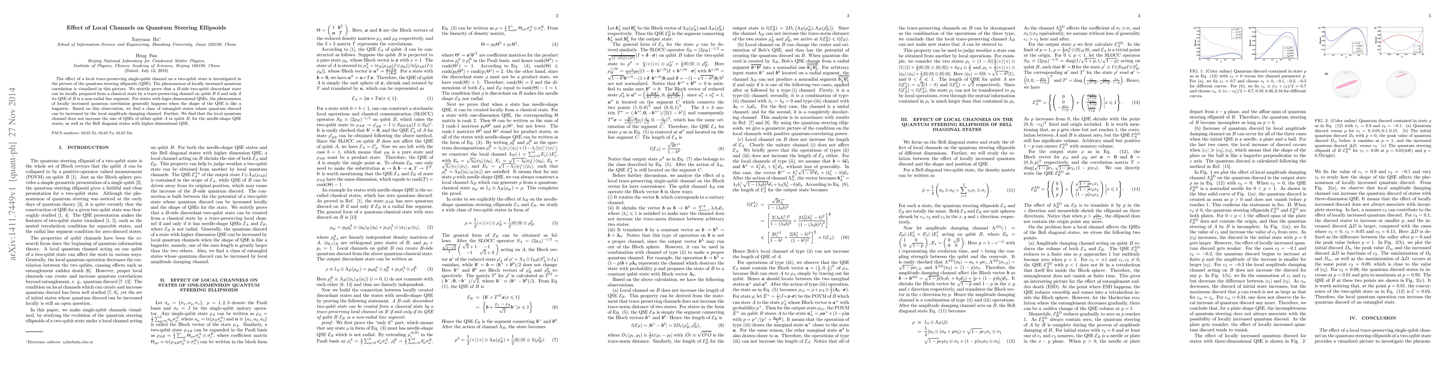 The effect of a local trace-preserving single-qubit channel on a two-qubit state is investigated in the picture of the quantum steering ellipsoids (QSE). The phenomenon of locally increased quantum correlation is visualized in this picture. We strictly prove that a $B$-side two-qubit discordant state can be locally prepared from a classical state by a trace-preserving channel on qubit $B$ if and only if its QSE of $B$ is a non-radial line segment. For states with higer-dimensional QSEs, the phenomenon of locally increased quantum correlation generally happens when the shape of the QSE is like a baguette. Based on this observation, we find a class of entangled states whose quantum discord can be increased by the local amplitude damping channel. Further, We find that the local quantum channel does not increase the size of QSEs of either qubit $A$ or qubit $B$, for the needle-shape QSE states, as well as the Bell diagonal states with higher-dimensional QSE.
