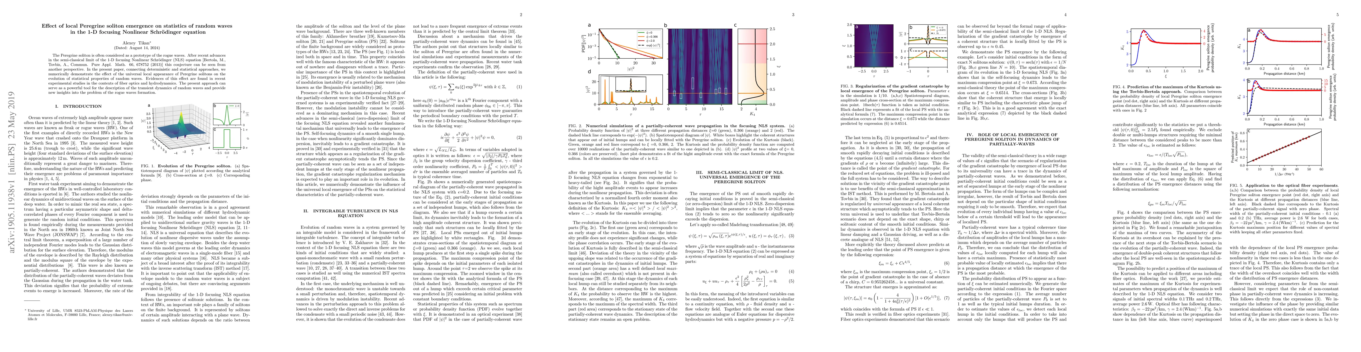 The Peregrine soliton is often considered as a prototype of the rogue waves. After recent advances in the semi-classical limit of the 1-D focusing Nonlinear Schr\"odinger (NLS) equation this conjecture can be seen from another perspective. In the present paper, connecting deterministic and statistical approaches, we numerically demonstrate the effect of the universal local appearance of Peregrine solitons on the evolution of statistical properties of random waves. Evidences of this effect are found in recent experimental studies in the contexts of fiber optics and hydrodynamics. The present approach can serve as a powerful tool for the description of the transient dynamics of random waves and provide new insights into the problem of the rogue waves formation.