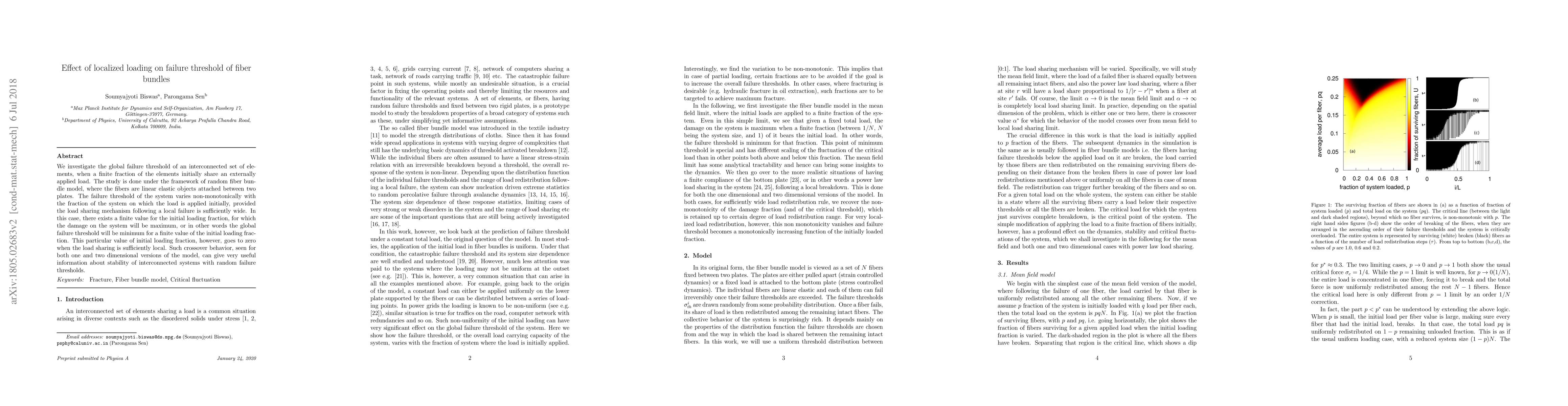 This paper explores how localized loading affects the failure threshold of interconnected fiber bundles, finding that the global failure threshold varies non-monotonically with the initial loading fraction. The study reveals a finite value of initial loading that maximizes system damage, but this value diminishes as load sharing becomes more localized.