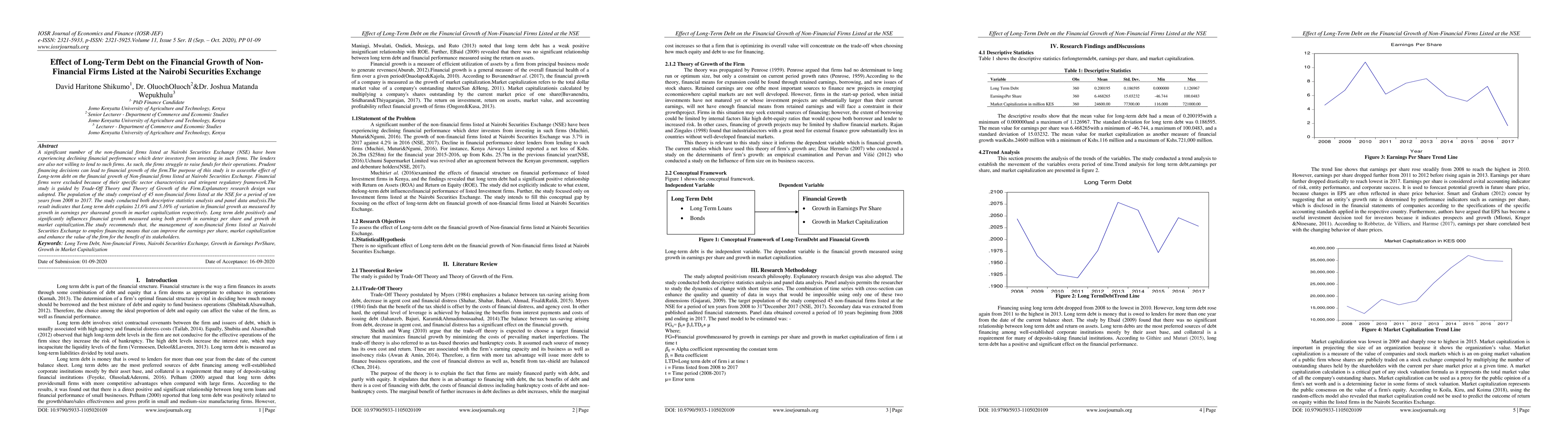 This study examines the impact of long-term debt on the financial growth of non-financial firms listed at the Nairobi Securities Exchange, finding that long-term debt significantly influences financial growth, measured by earnings per share and market capitalization. The study recommends that firms adopt financing strategies that enhance their financial performance and stakeholder value.