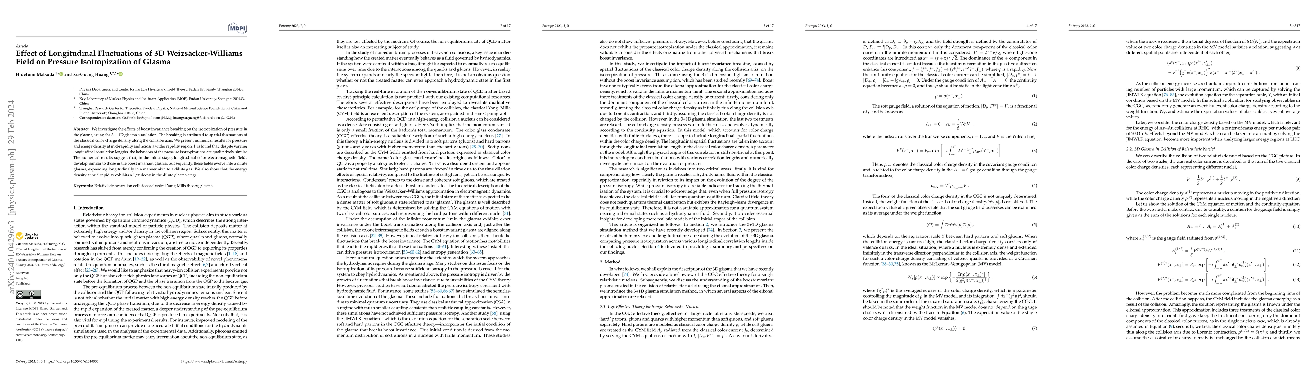 This paper explores how longitudinal fluctuations in the Weizs\"{a}cker-Williams field affect pressure isotropization in the glasma. Despite varying correlation lengths, the pressure isotropization behaviors remain qualitatively similar, indicating that initial longitudinal color electromagnetic fields evolve into a dilute glasma expanding like a gas, with mid-rapidity energy density decaying as $1/\tau$.