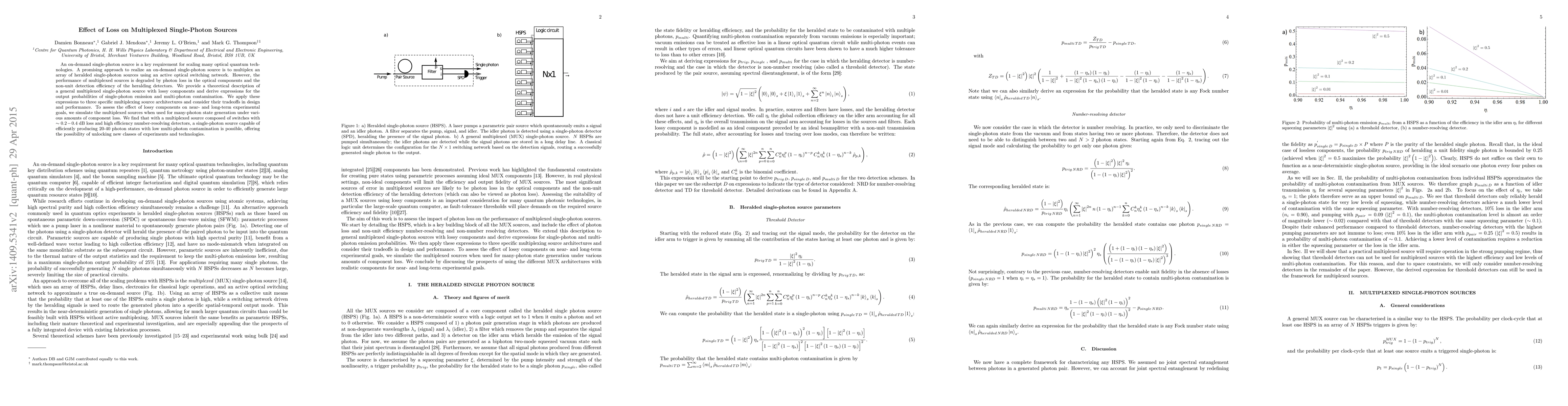 This paper explores the impact of photon loss on the performance of multiplexed single-photon sources used in quantum technologies, deriving expressions for output probabilities and simulating various architectures to assess their efficacy under different loss conditions. The findings suggest that with moderate component loss and high-efficiency detectors, efficient generation of many-photon states is achievable.