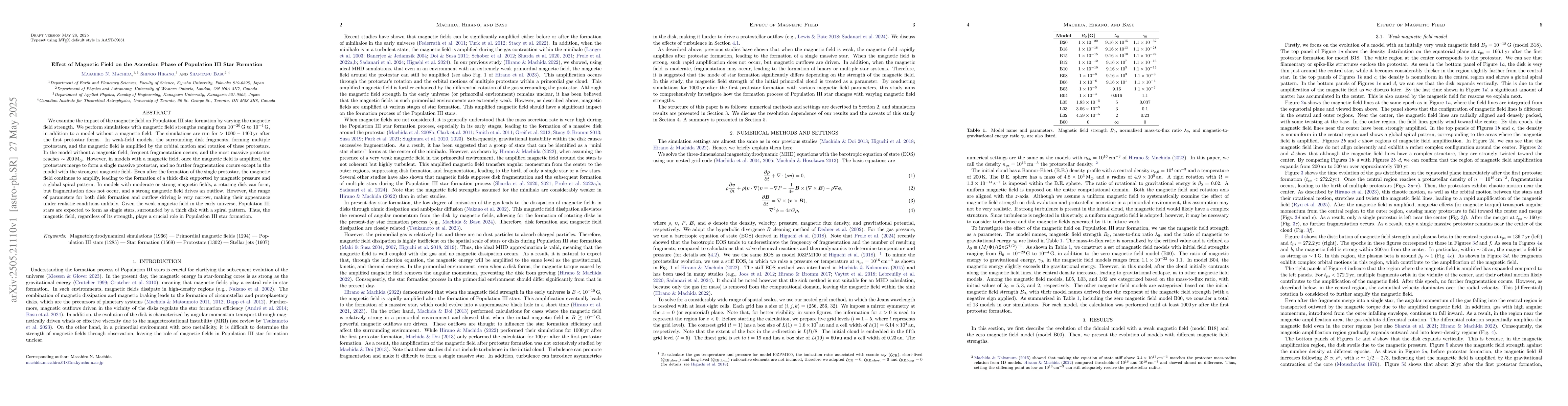 The paper presents detailed simulations of magnetic field effects on Population III star accretion phases, revealing how magnetic fields influence fragmentation, protostar mergers, and disk formation.