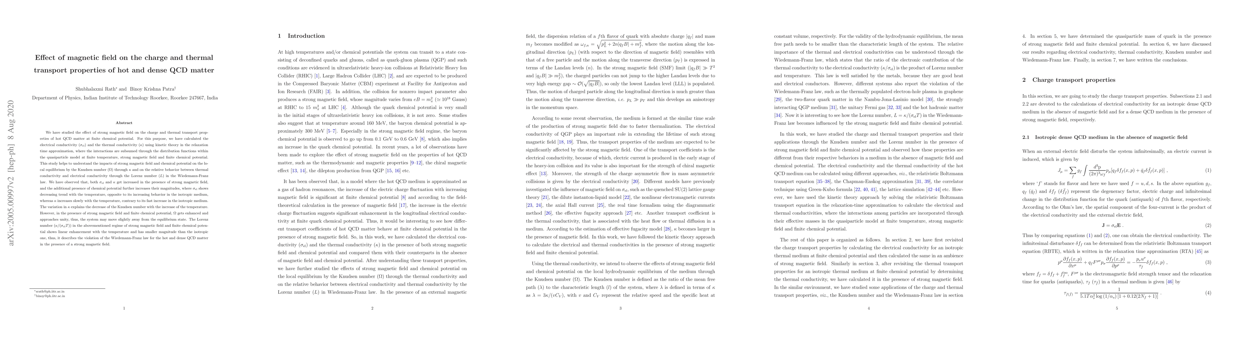 This study investigates the impact of strong magnetic fields on the charge and thermal transport properties of hot, dense QCD matter at finite chemical potential, revealing increased electrical and thermal conductivities. The Lorenz number shows a linear enhancement with temperature and indicates a violation of the Wiedemann-Franz law in this regime.