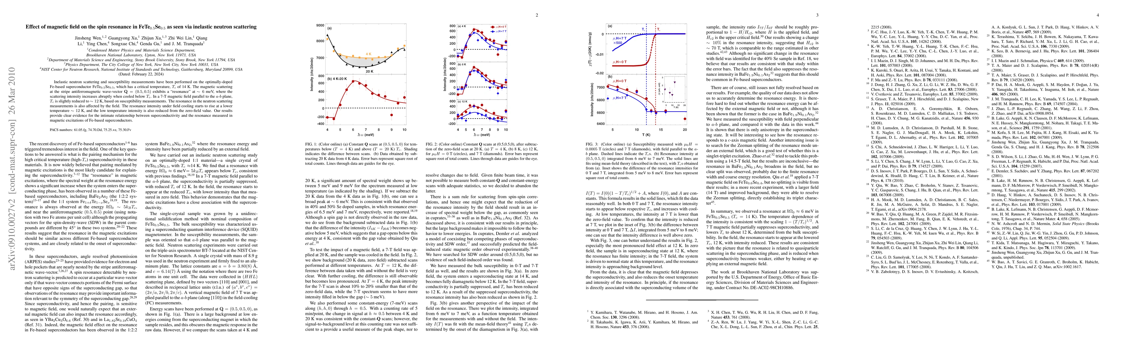 This study investigates the effect of a magnetic field on spin resonance in FeTe(0.5)Se(0.5) using inelastic neutron scattering, revealing that the resonance intensity shifts and decreases under a 7-T field, indicating a strong interplay between superconductivity and magnetic excitations in this Fe-based superconductor.