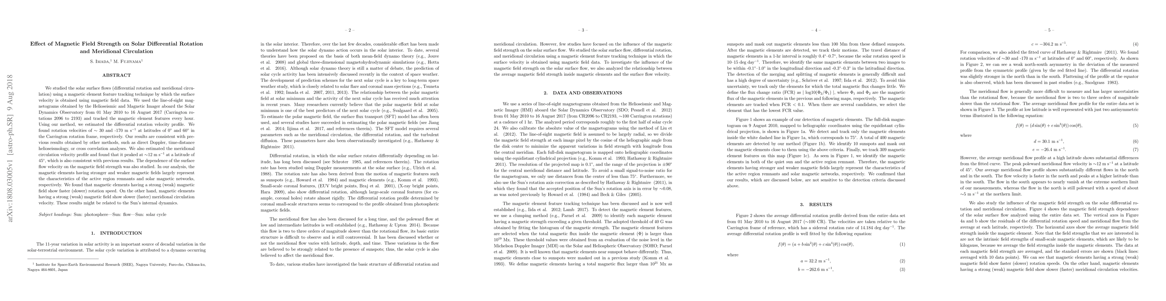 This study uses magnetic element feature tracking to analyze solar differential rotation and meridional circulation, finding that stronger magnetic fields correlate with faster rotation speeds and slower meridional circulation, while weaker fields show the opposite trend, potentially linking these behaviors to the Sun's internal dynamics.