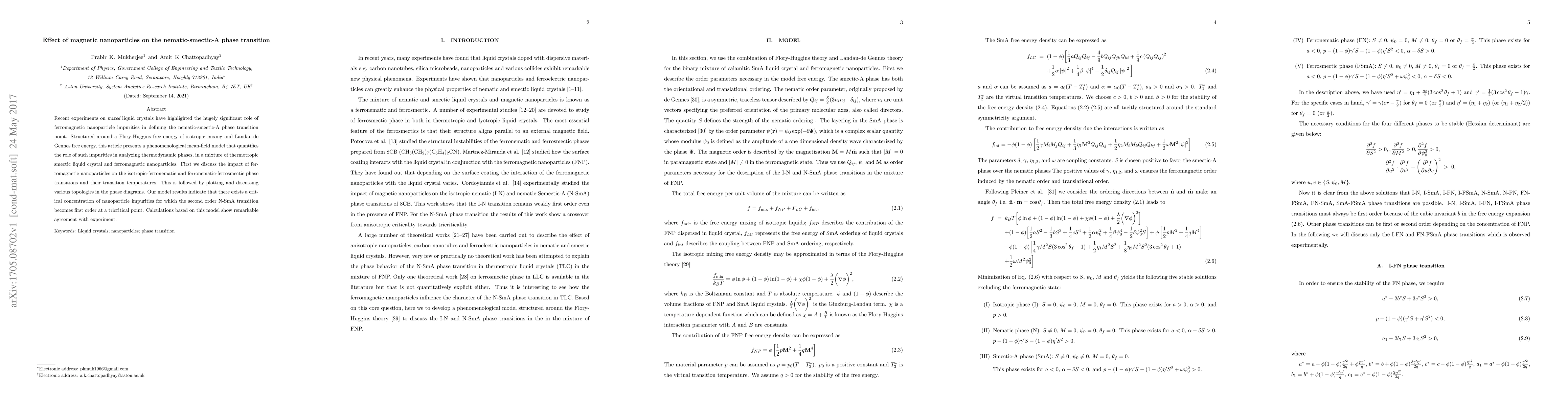 This paper develops a phenomenological model to quantify how ferromagnetic nanoparticles influence the nematic-smectic-A phase transition in mixed liquid crystals, revealing a critical impurity concentration that transforms the transition from second to first order at a tricritical point, with model predictions matching experimental results.