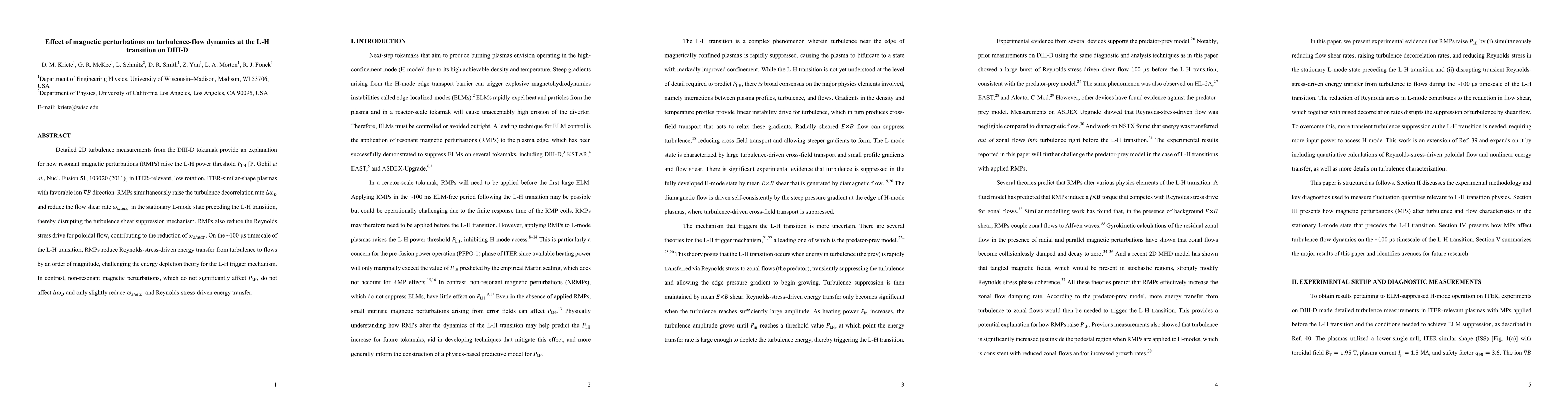 Researchers found that magnetic perturbations in a tokamak plasma disrupt turbulence-flow dynamics, raising the threshold power for the L-H transition and reducing flow shear rates.
