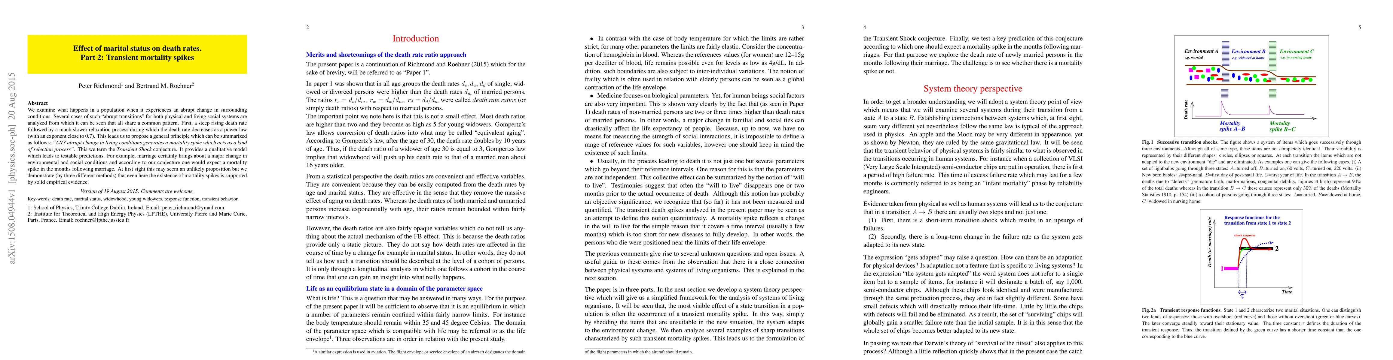We examine what happens in a population when it experiences an abrupt change in surrounding conditions. Several cases of such "abrupt transitions" for both physical and living social systems are analyzed from which it can be seen that all share a common pattern. First, a steep rising death rate followed by a much slower relaxation process during which the death rate decreases as a power law (with an exponent close to 0.7). This leads us to propose a general principle which can be summarized as follows: "ANY abrupt change in living conditions generates a mortality spike which acts as a kind of selection process." This we term the Transient Shock conjecture. It provides a qualitative model which leads to testable predictions. For example, marriage certainly brings about a major change in environmental and social conditions and according to our conjecture one would expect a mortality spike in the months following marriage. At first sight this may seem an unlikely proposition but we demonstrate (by three different methods) that even here the existence of mortality spikes is supported by solid empirical evidence.