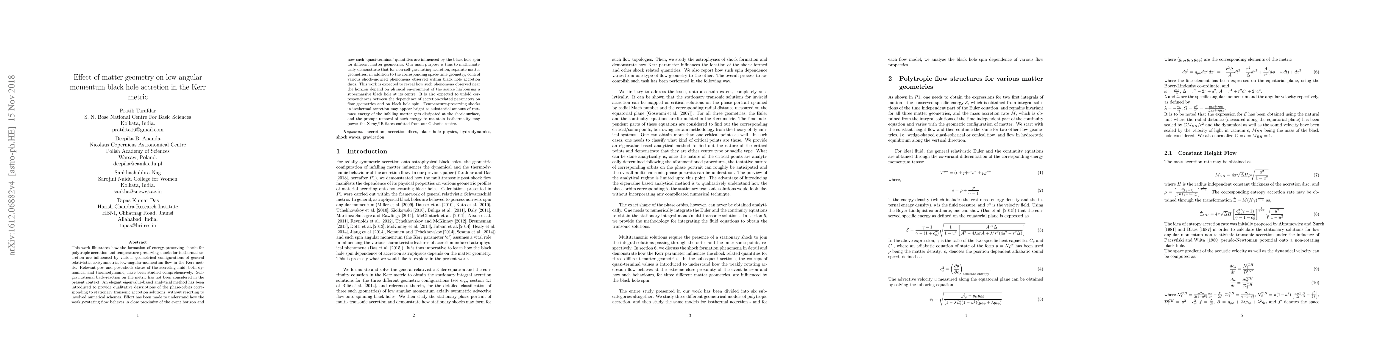 This paper investigates how different matter geometries affect the formation of shocks in low angular momentum accretion flows around Kerr black holes, using an analytical method to describe transonic accretion solutions. It demonstrates that distinct geometries influence shock-induced phenomena, potentially explaining the X-ray/IR flares from the Galactic centre.