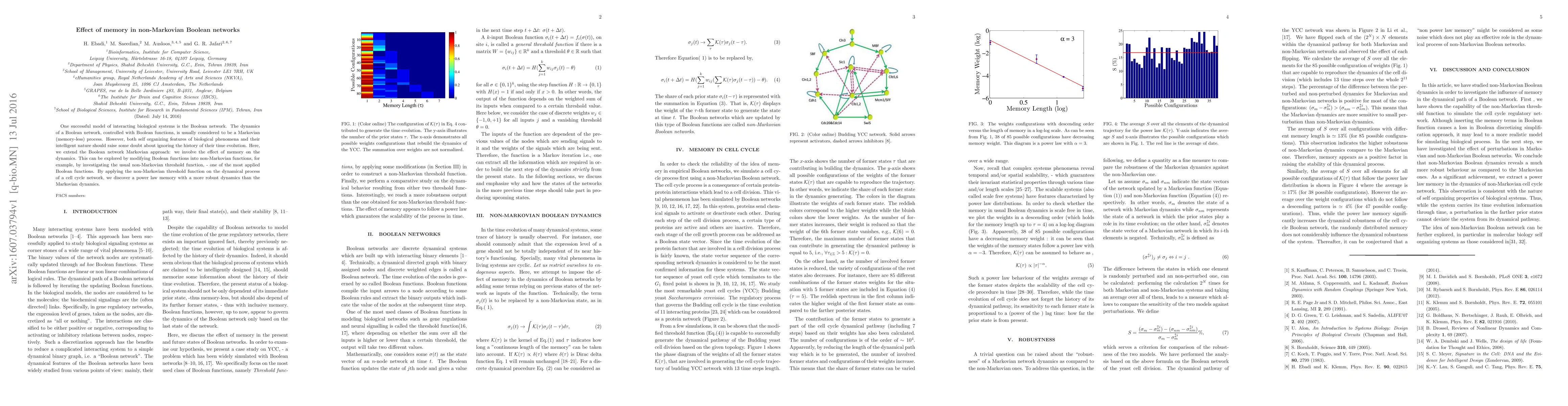 One successful model of interacting biological systems is the Boolean network. The dynamics of a Boolean network, controlled with Boolean functions, is usually considered to be a Markovian (memory-less) process. However, both self organizing features of biological phenomena and their intelligent nature should raise some doubt about ignoring the history of their time evolution. Here, we extend the Boolean network Markovian approach: we involve the effect of memory on the dynamics. This can be explored by modifying Boolean functions into non-Markovian functions, for example, by investigating the usual non-Markovian threshold function, - one of the most applied Boolean functions. By applying the non-Markovian threshold function on the dynamical process of a cell cycle network, we discover a power law memory with a more robust dynamics than the Markovian dynamics.