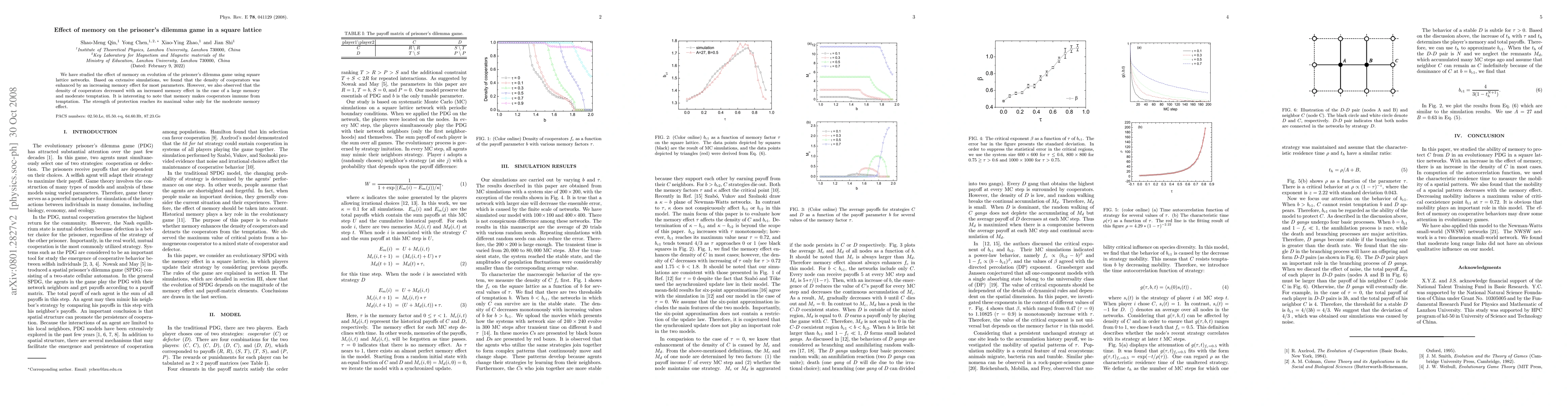 This study investigates how memory influences the dynamics of the prisoner's dilemma game on square lattice networks. The research finds that memory generally boosts cooperator density, but a large memory with moderate temptation can reduce it, while moderate memory provides the strongest protection against temptation.