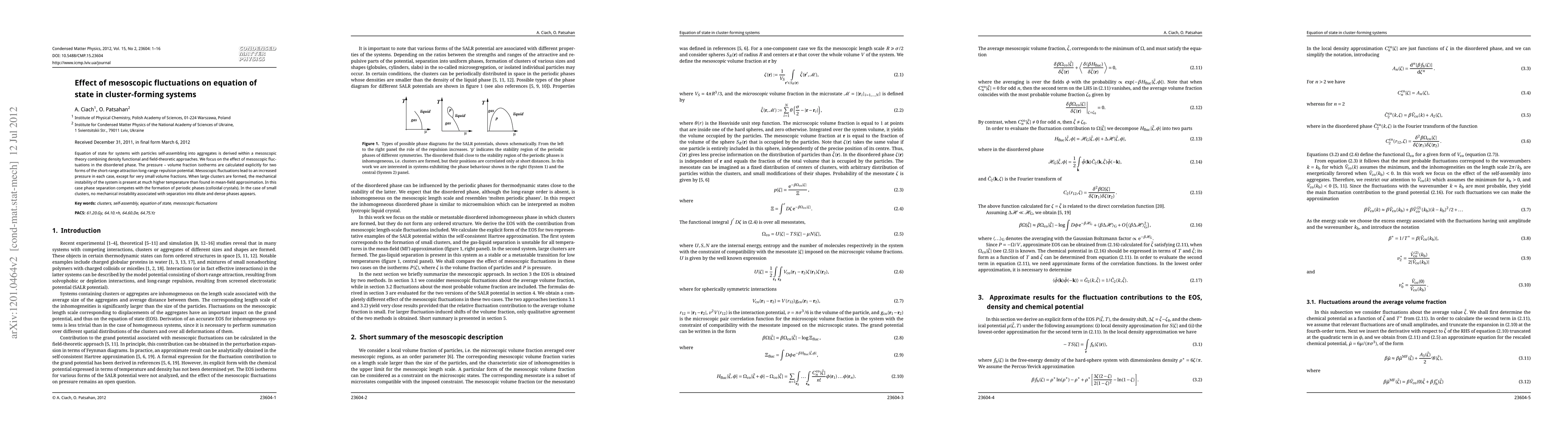 This paper derives an equation of state for cluster-forming systems using a mesoscopic theory, revealing that mesoscopic fluctuations increase pressure, especially when large clusters form, leading to mechanical instability at higher temperatures than predicted by mean-field approximation. Small clusters do not exhibit mechanical instability.