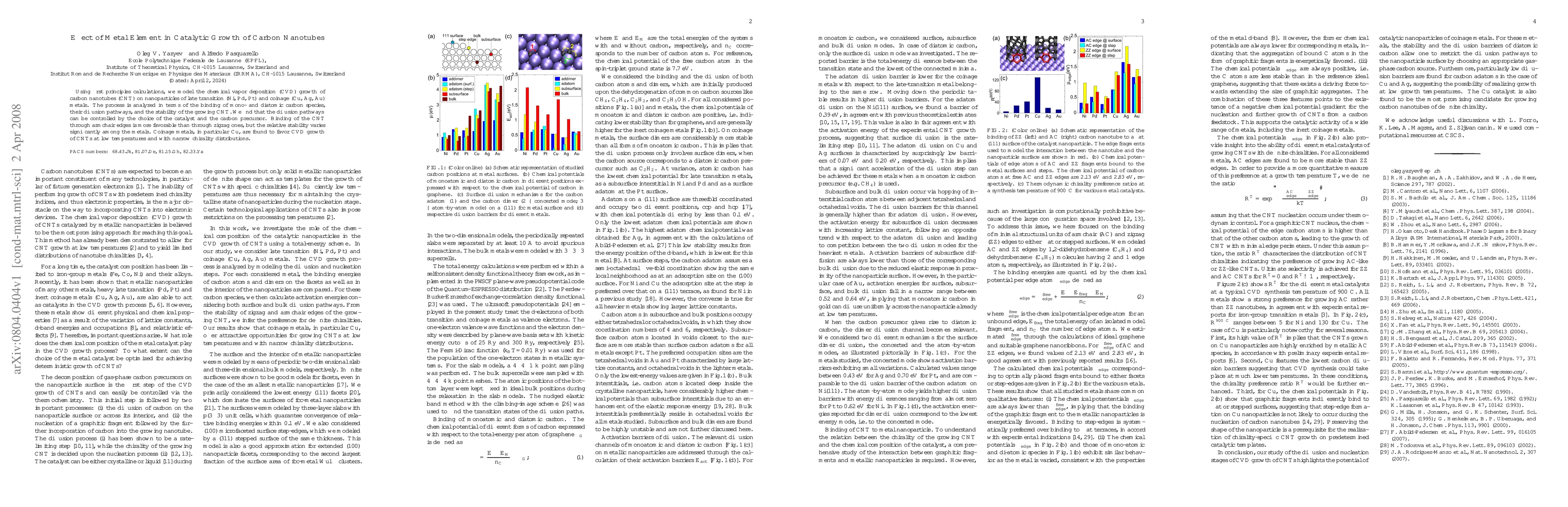 This study uses first principles calculations to investigate how different metals influence the growth of carbon nanotubes through chemical vapor deposition, finding that coinage metals like copper favor low-temperature growth with narrow chirality distributions.