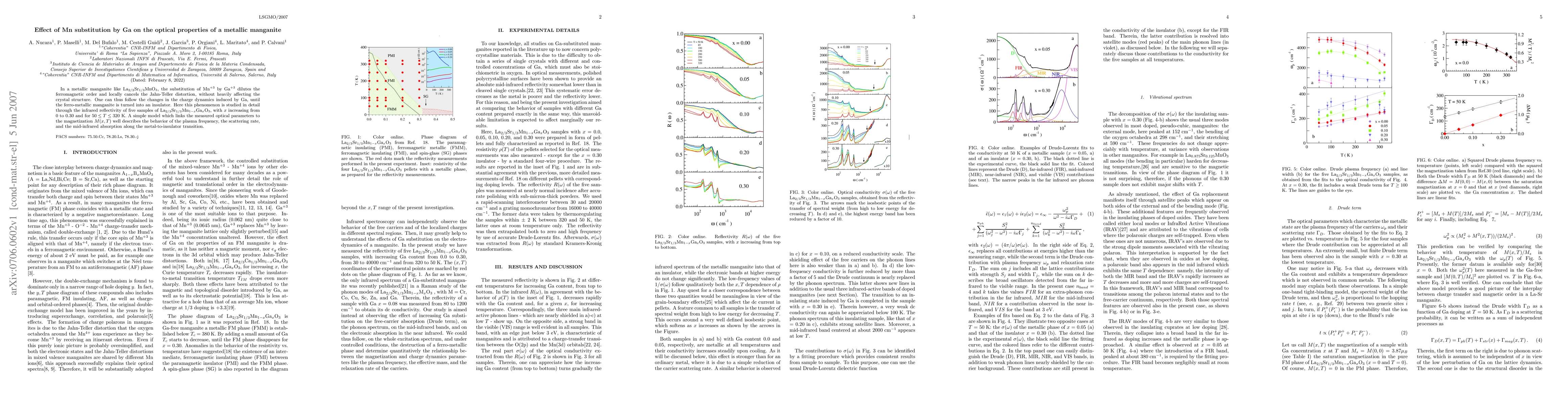 This study investigates the impact of Ga substitution for Mn in La(2/3)Sr(1/3)MnO(3) on its optical properties, revealing changes in charge dynamics and the transition from ferro-metallic to insulating states. The infrared reflectivity analysis of La(2/3)Sr(1/3)Mn(1-x)Ga(x)O(3) samples shows a correlation between optical parameters and magnetization, supporting a model of the metal-to-insulator transition.