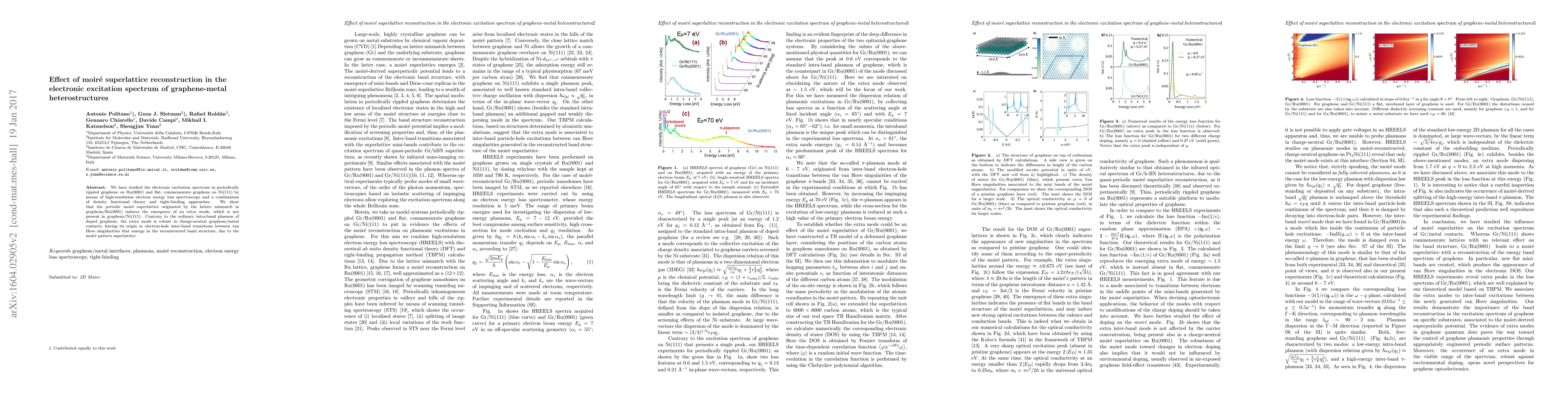 This study reveals that moiré superlattice reconstruction in graphene-metal heterostructures, specifically on Ru(0001), introduces an additional electronic excitation mode not found in flat graphene on Ni(111). This mode originates from inter-band transitions due to van Hove singularities in the reconstructed band structure.