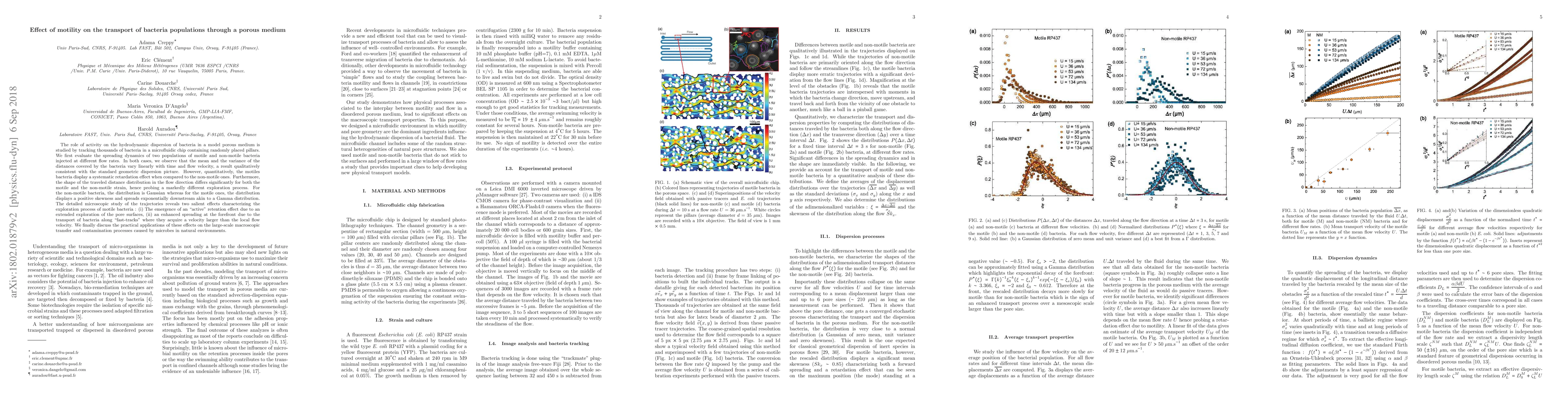 This study investigates the impact of bacterial motility on their dispersion through a porous medium using microfluidic chips. Motile bacteria show a systematic retardation compared to non-motile ones, with distinct distribution shapes and exploration processes, including an "active" retention effect and enhanced spreading along fast-tracks. These findings have implications for microbial contamination in natural environments.