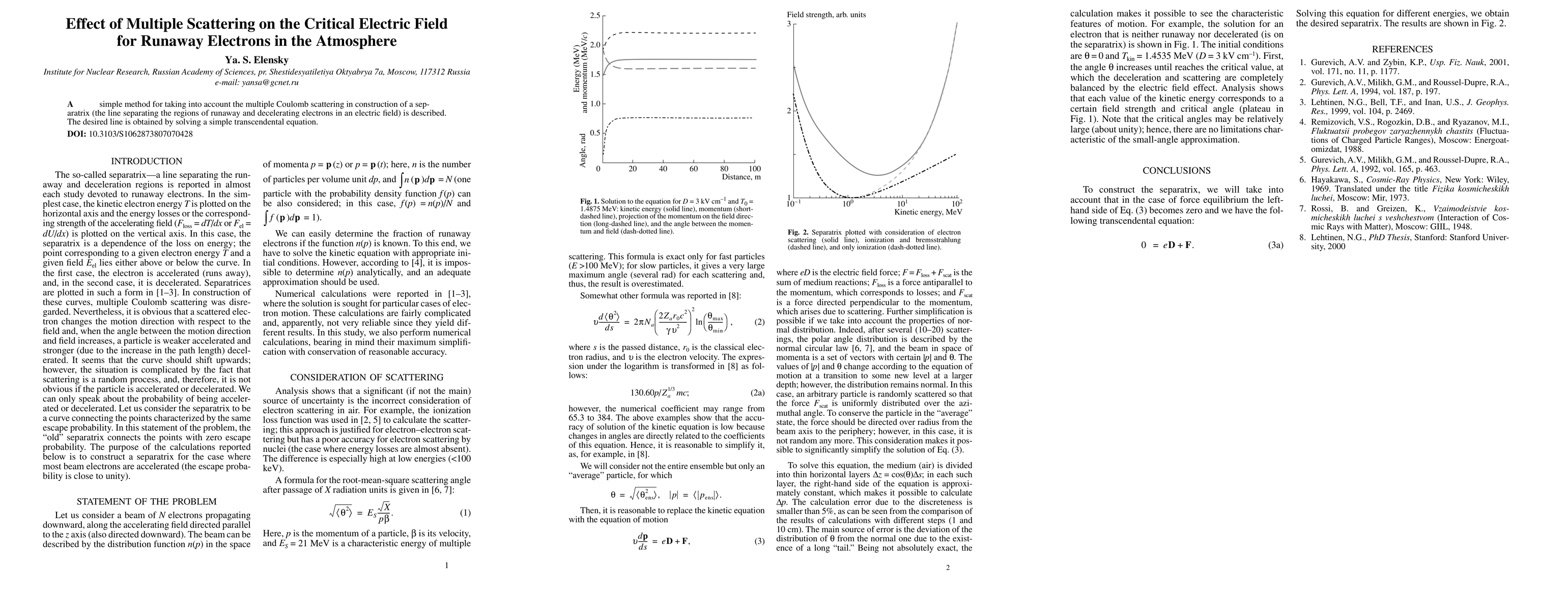 Summary: The paper proposes a straightforward method to incorporate multiple Coulomb scattering in determining the separatrix for runaway electrons in an electric field. This method involves solving a simple transcendental equation to delineate the boundary between runaway and decelerating electron regions.