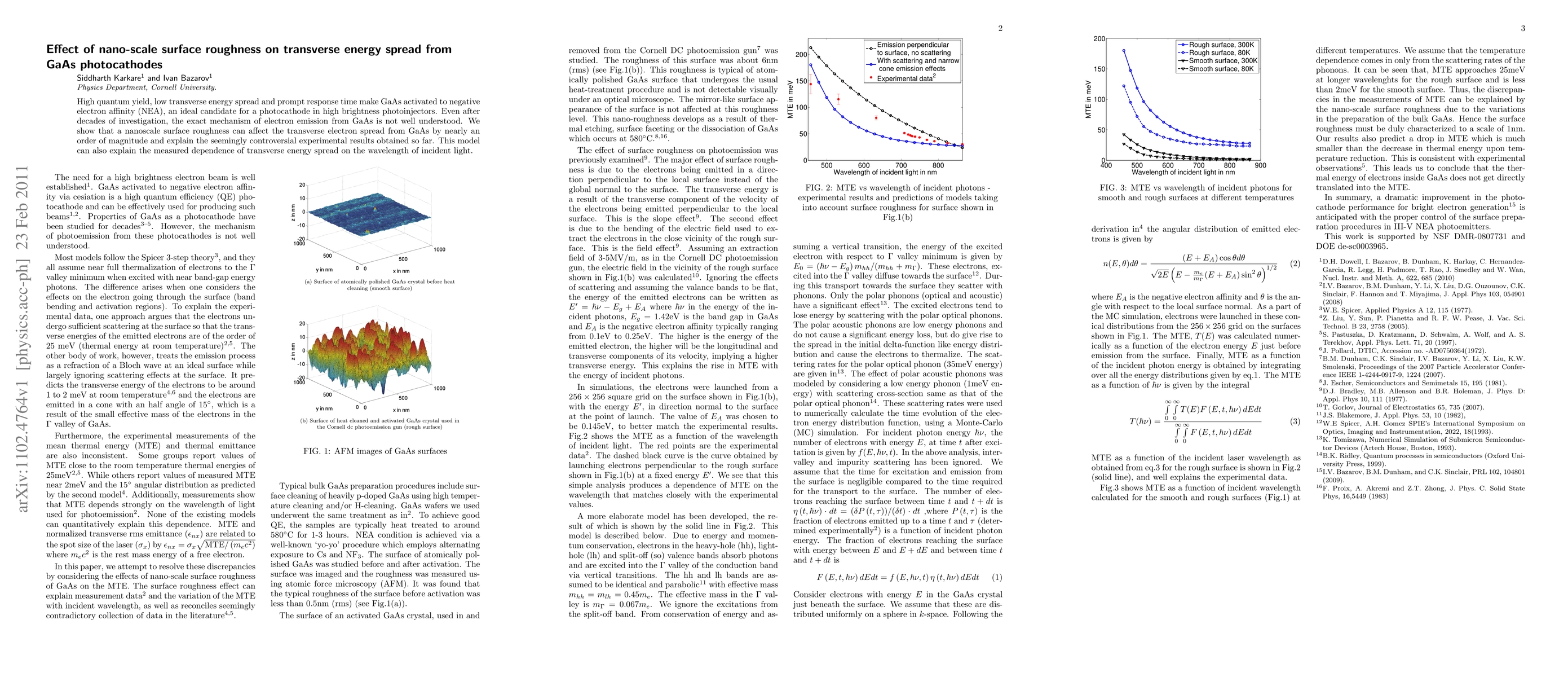 High quantum yield, low transverse energy spread and prompt response time make GaAs activated to negative electron affnity, an ideal candidate for a photocathode in high brightness photoinjectors. Even after decades of investigation, the exact mechanism of electron emission from GaAs is not well understood. We show that a nanoscale surface roughness can affect the transverse electron spread from GaAs by nearly an order of magnitude and explain the seemingly controversial experimental results obtained so far. This model can also explain the measured dependence of transverse energy spread on the wavelength of incident light.