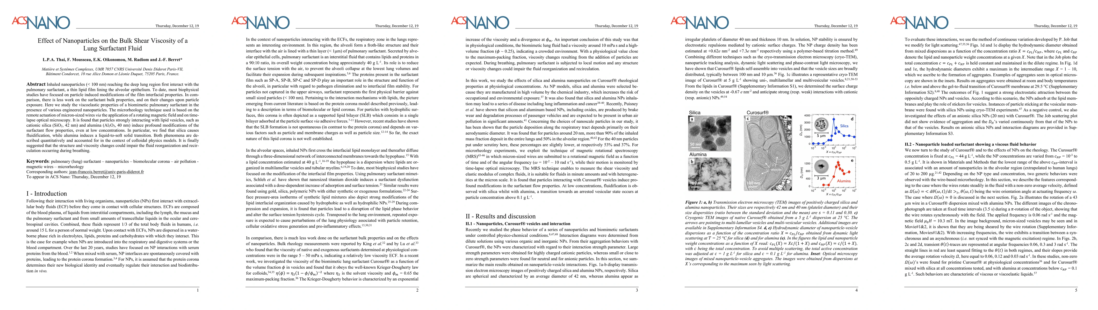 This study investigates how engineered nanoparticles influence the bulk shear viscosity of a lung surfactant fluid using microrheology. It finds that cationic silica nanoparticles fluidify the surfactant, while alumina nanoparticles induce a transition to a soft solid state, potentially impairing lung fluid dynamics.