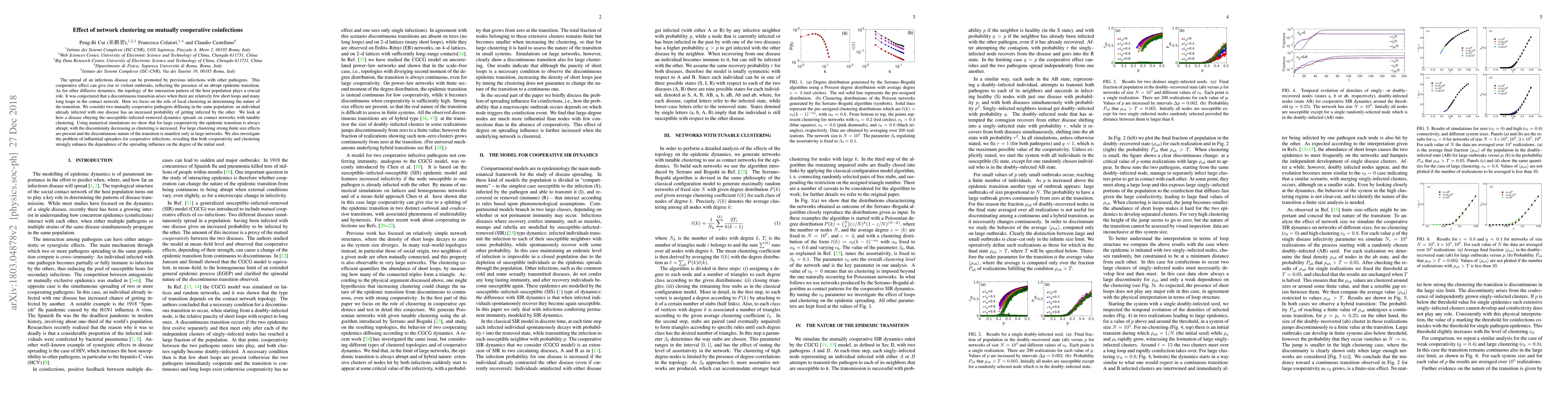 Research shows that network clustering enhances abrupt epidemic transitions for mutually cooperative coinfections, with increasing clustering decreasing the discontinuity of the transition. Large networks reveal strong finite size effects.
