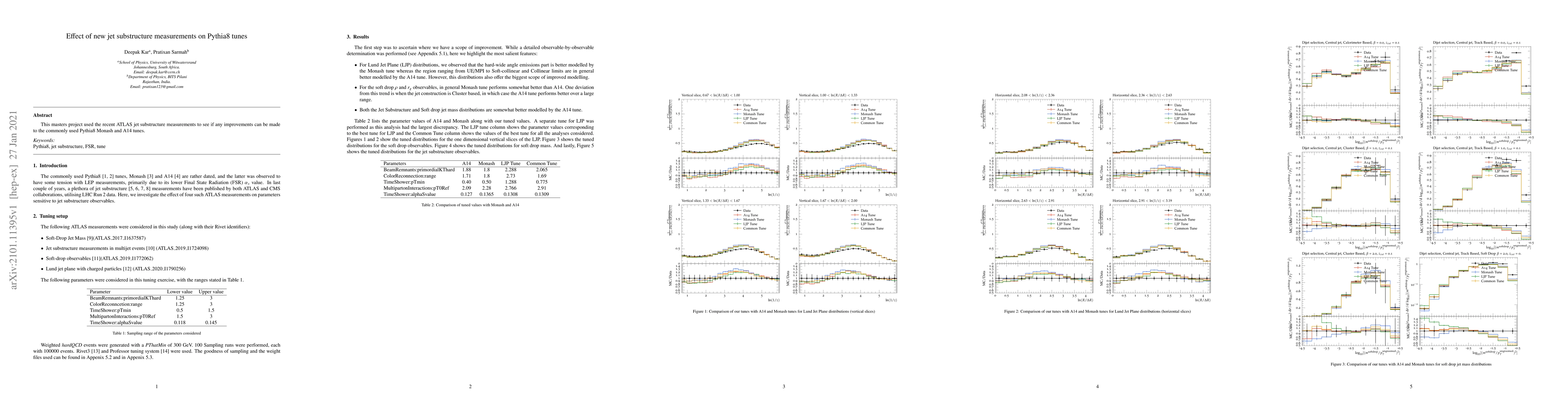 This study used the recent ATLAS jet substructure measurements to see if any improvements can be made to the commonly used Pythia8 Monash and A14 tunes.