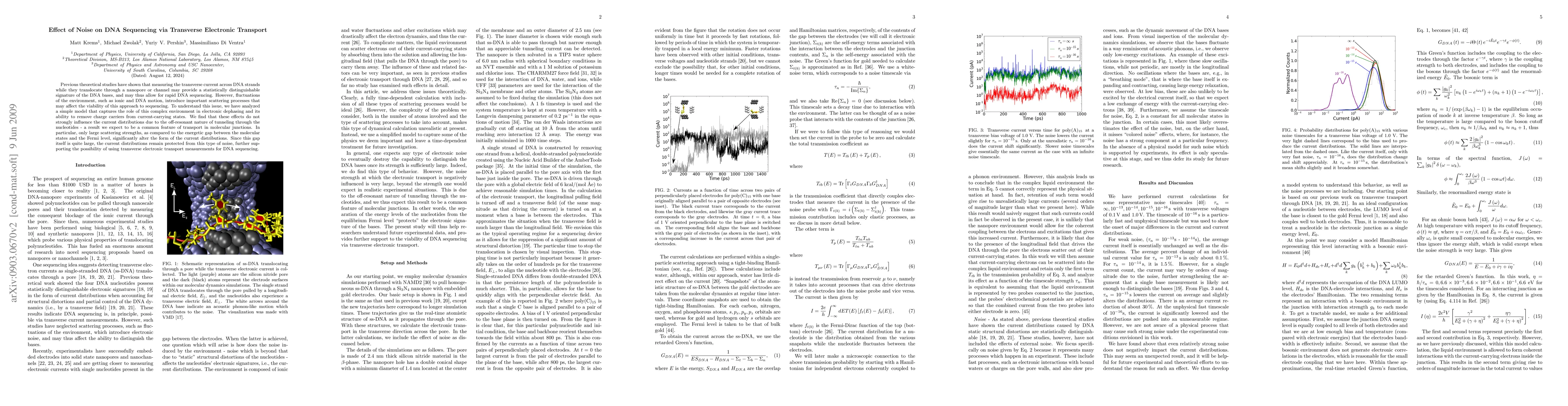 This paper investigates how environmental noise affects DNA sequencing via transverse electronic transport through nanopores. It finds that despite environmental fluctuations, the current distributions remain largely unaffected due to the off-resonant tunneling nature and the large energy gap, supporting the feasibility of this sequencing method.