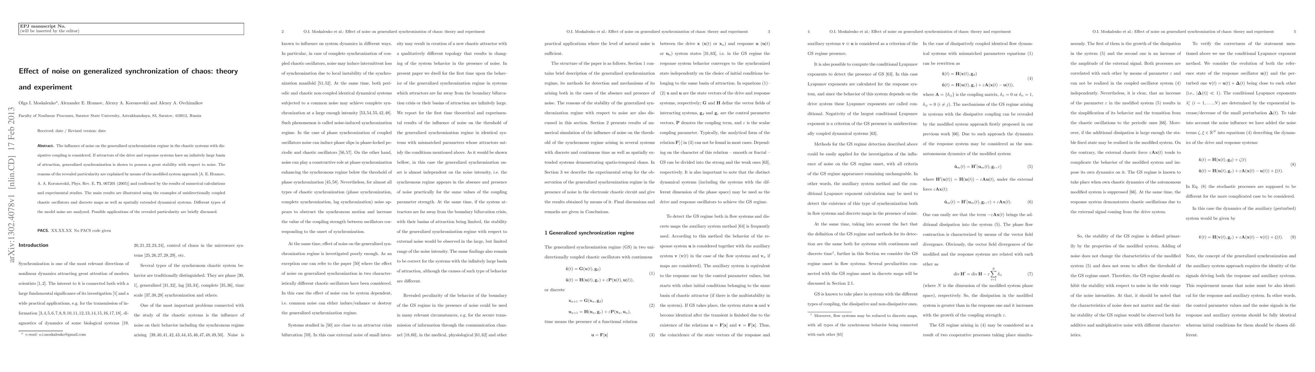 This paper investigates how noise affects generalized synchronization in chaotic systems with dissipative coupling, demonstrating that systems with infinitely large attractor basins exhibit high noise stability. The findings are supported by numerical simulations and experimental data, and potential applications are briefly discussed.