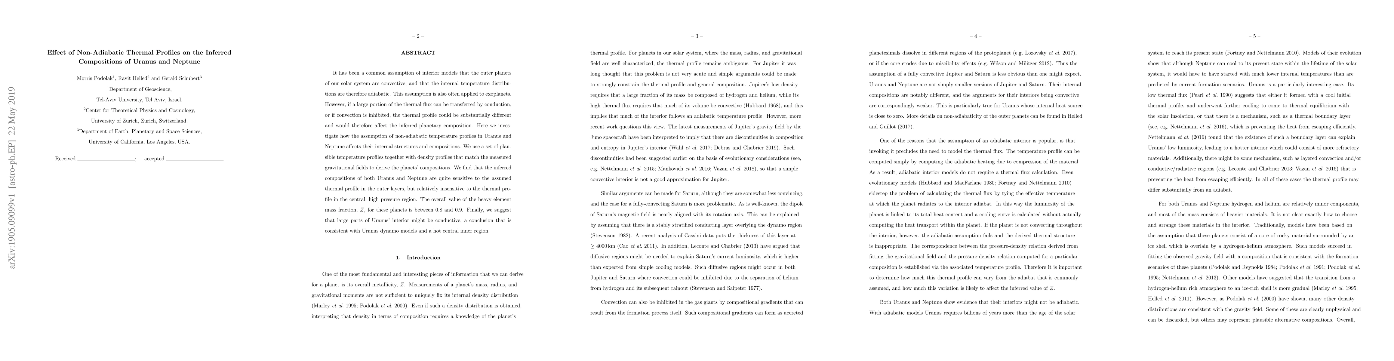 The paper presents a detailed analysis of how non-adiabatic thermal profiles impact the inferred compositions of Uranus and Neptune, using both traditional and polynomial density models.