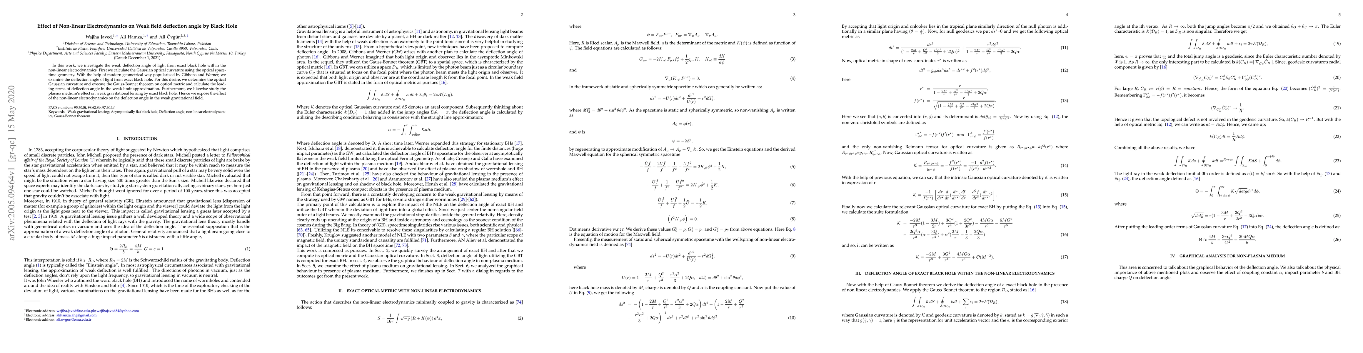 This paper examines the weak deflection angle of light from an exact black hole influenced by non-linear electrodynamics, employing optical spacetime geometry and the Gauss-Bonnet theorem. It reveals how non-linear electrodynamics affects the deflection angle in the weak gravitational field, alongside the impact of plasma medium on gravitational lensing.
